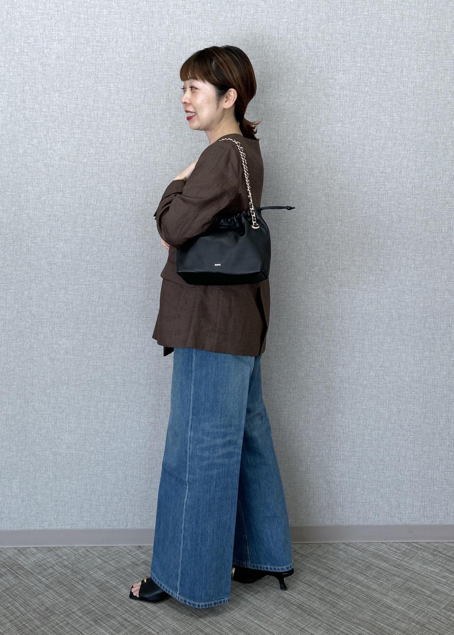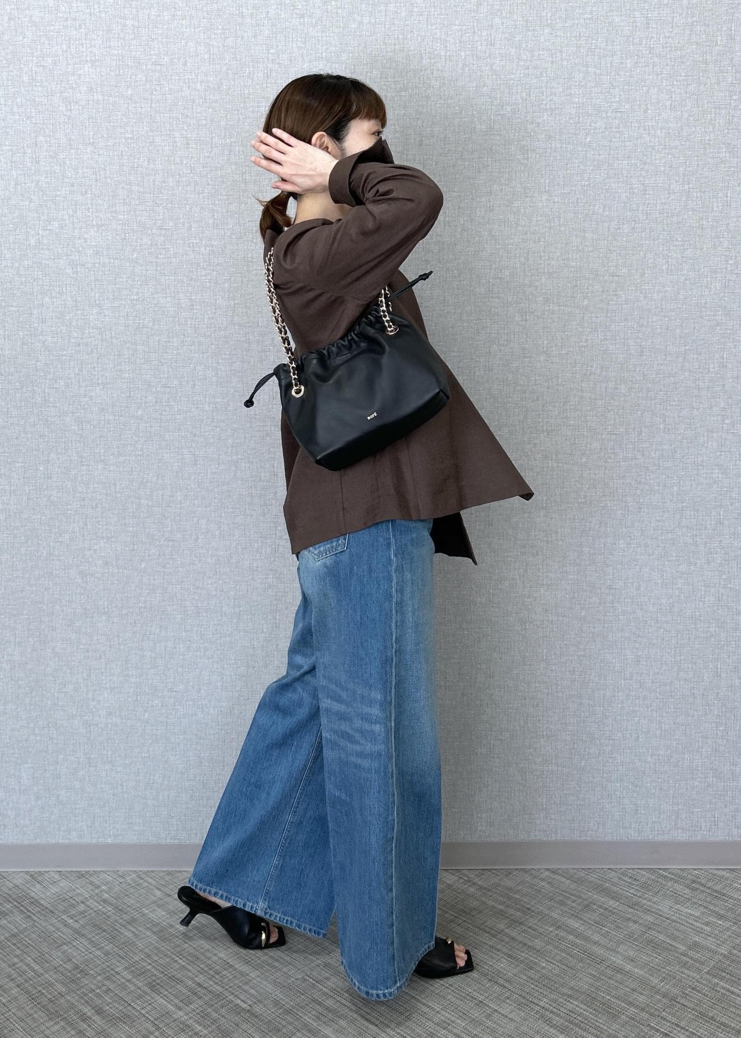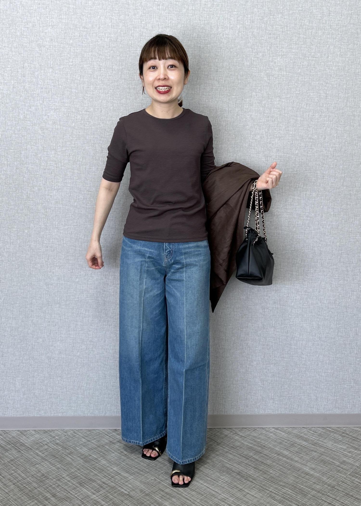 ROPÉイージーワイドデニムパンツ(岡山デニム)/セットアップ対応・イージーケアブルー系 / 36¥30,800レビュー丈感はギリギリ床につかない長さです。