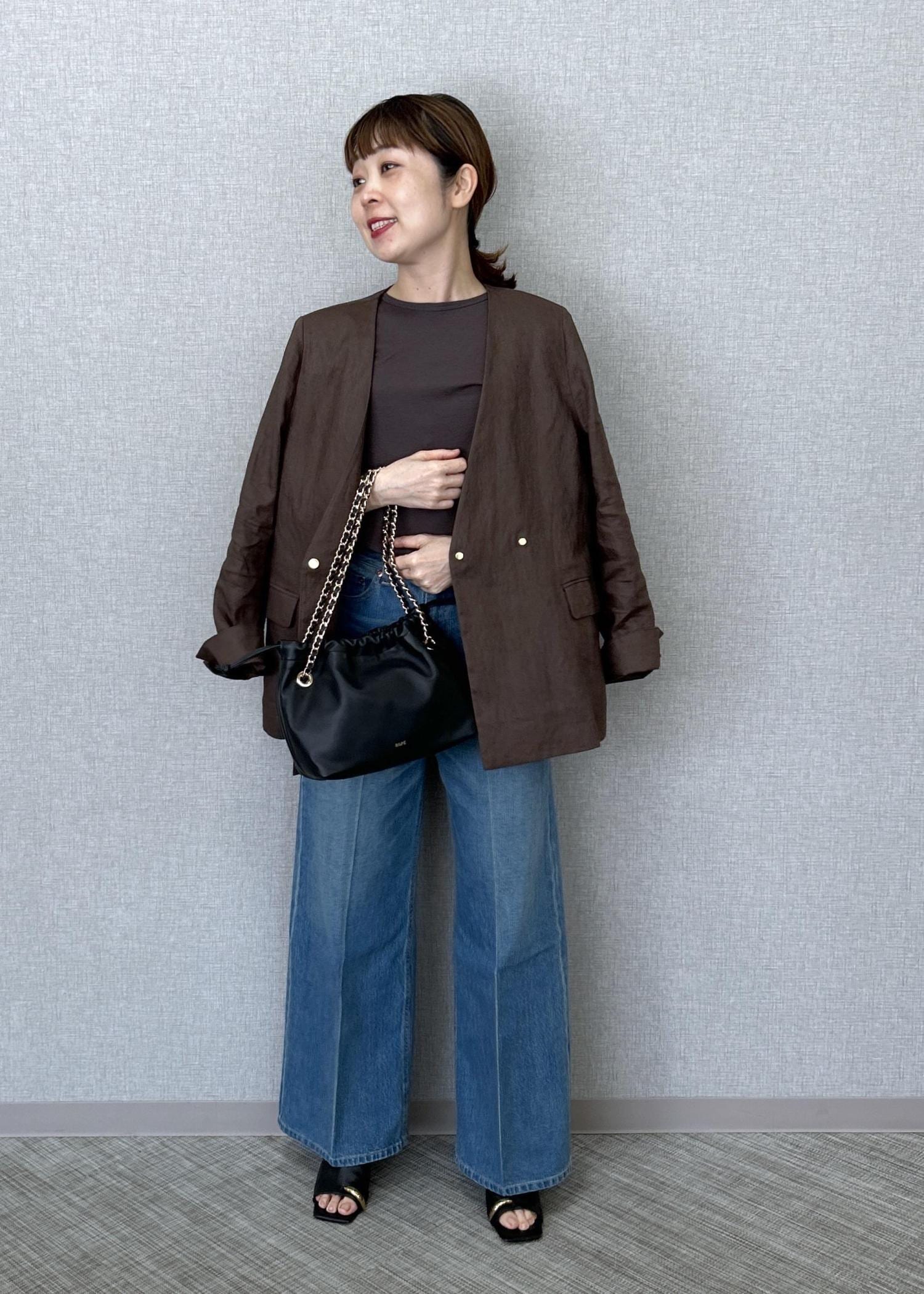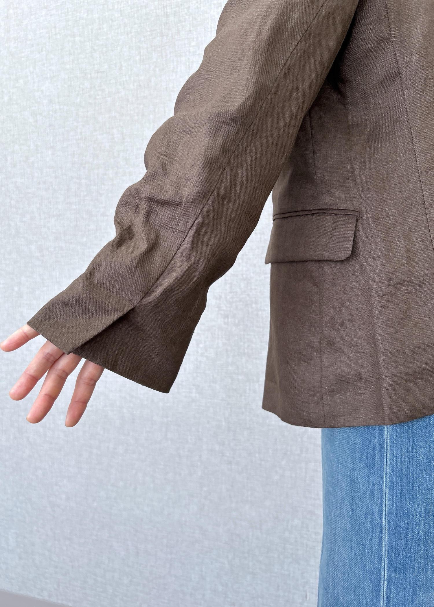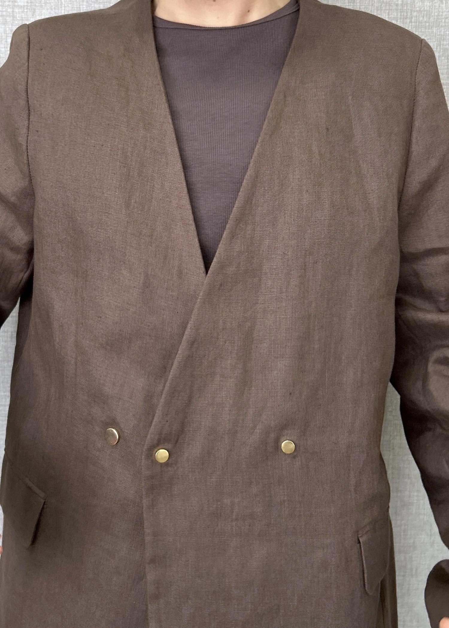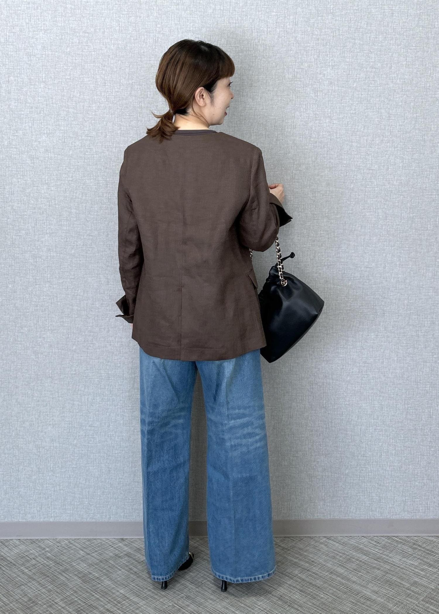 ROPÉリネンノーカラージャケット/セットアップ対応ダークブラウン系 / 36¥38,500レビュー着丈はヒップの下辺り迄の長さです。