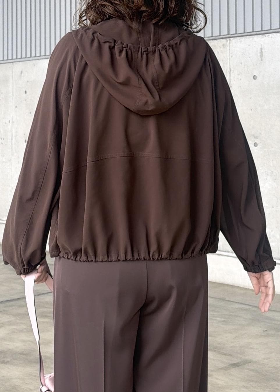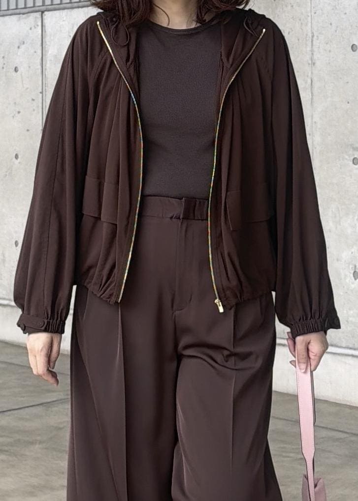 合わせるボトムによって裾を絞っていただけ、程よい落ち感のある素材なのでフードも主張し過ぎずカジュアルになり過ぎず使いやすいです。 -