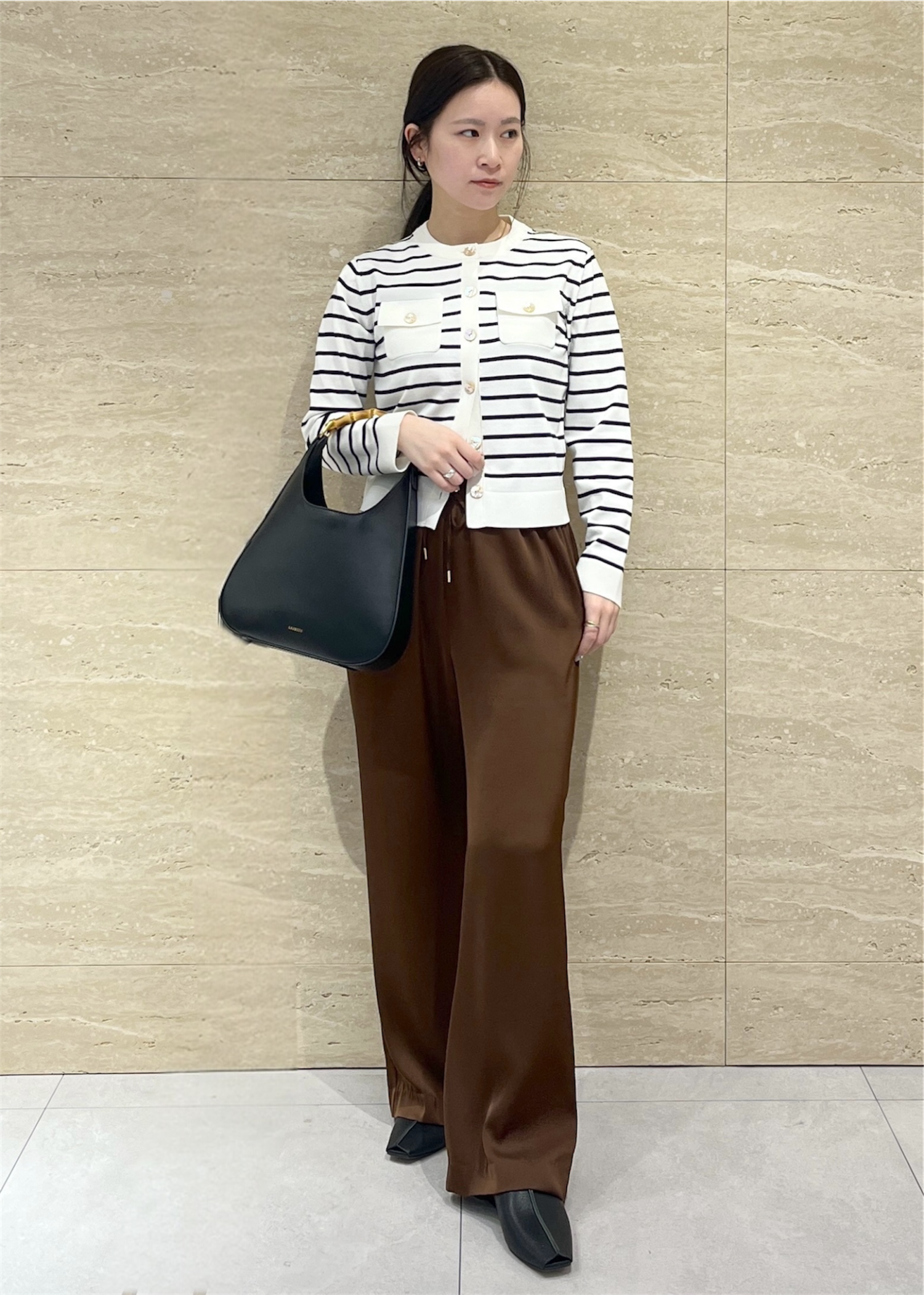 スッキリしたデザインなので、ワイドパンツやフレアスカートとも相性◎