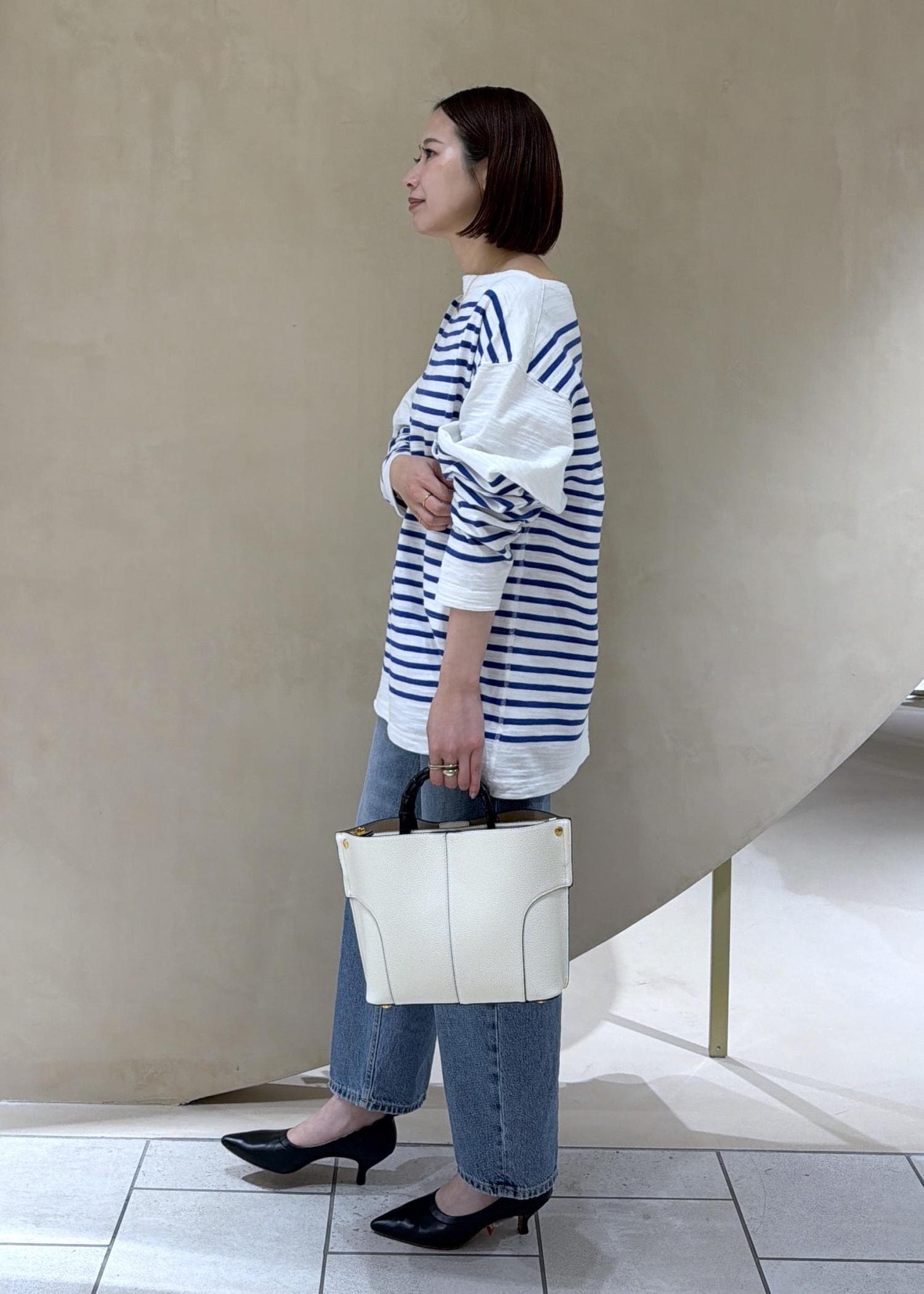 ROPÉ【E'POR】BAMBOO BAG Medium/軽量・通勤・26SS新色オフホワイト / F¥18,700レビュー長財布、メイクポーチ、携帯、ハンカチ、500mlのペットボトルも入る大きさです。