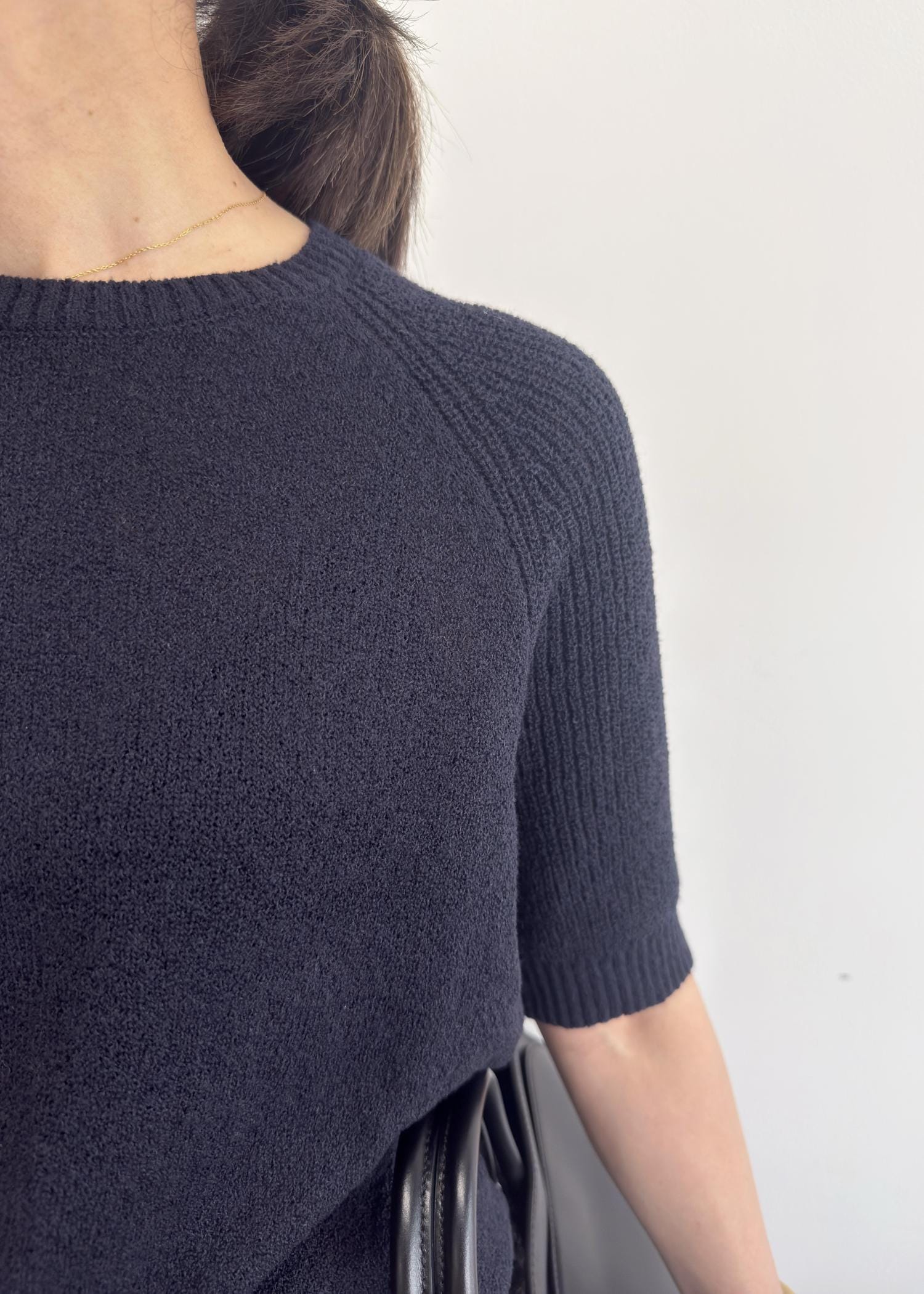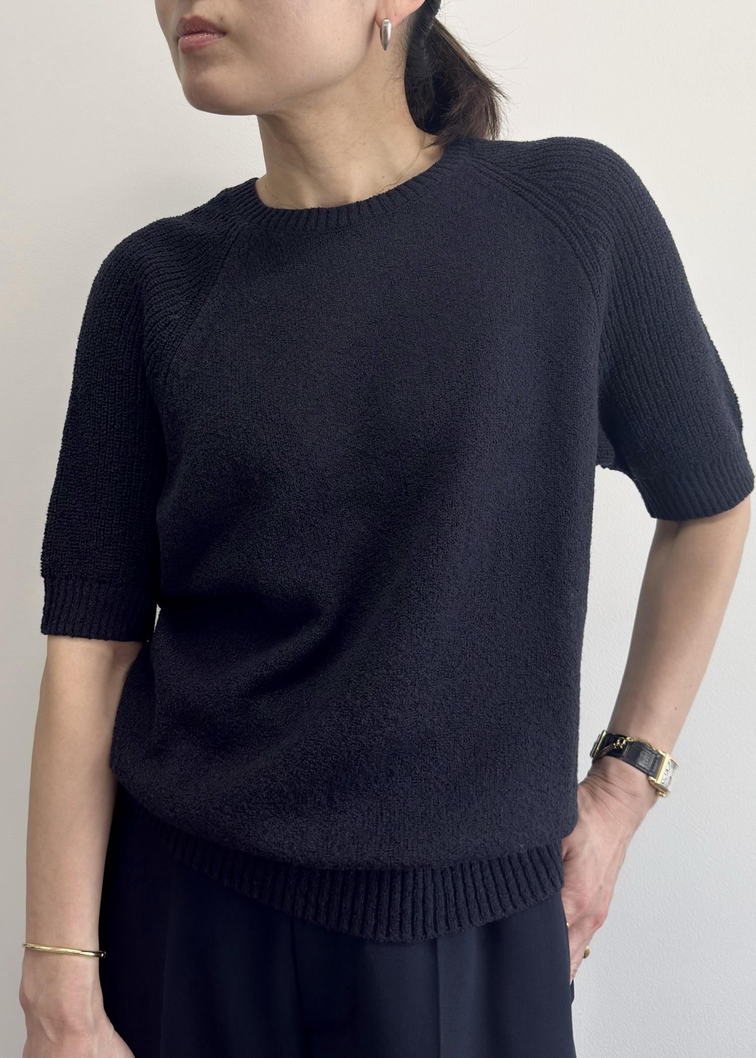 ROPÉ SELECT【一部店舗限定】【REALM(レルム)】HALF SLEEVE KNIT|5分袖ニットネイビー / 38¥28,600レビュー凹凸のある表面感がシンプルなコーデを格上げしてくれる、大人のニット。