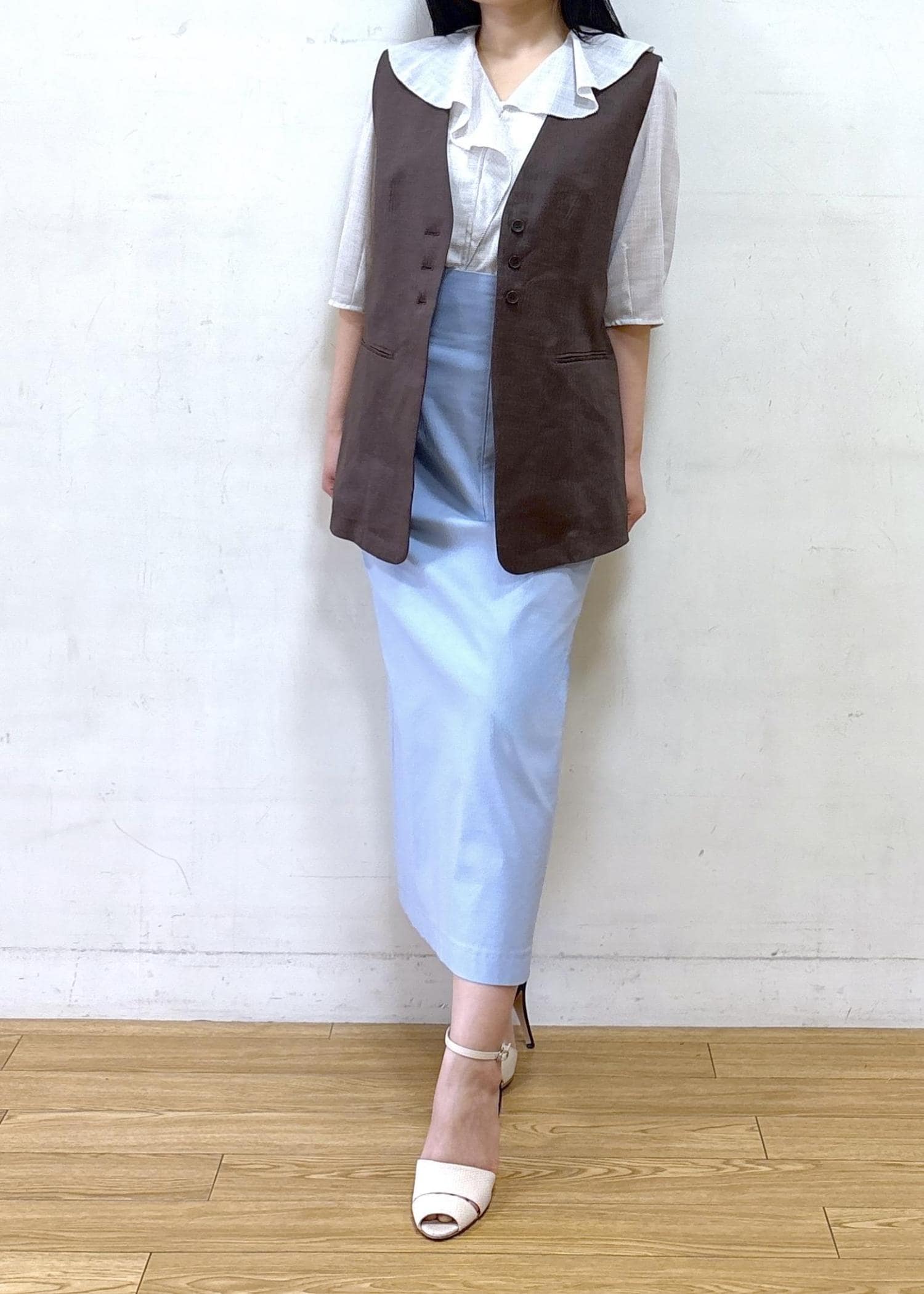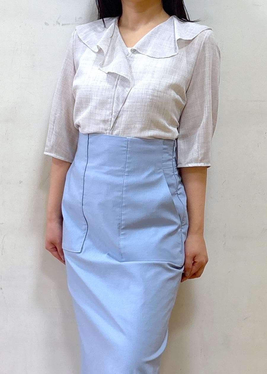 リネンライクフリルカラーブラウス/セットアップ対応・イージーケア