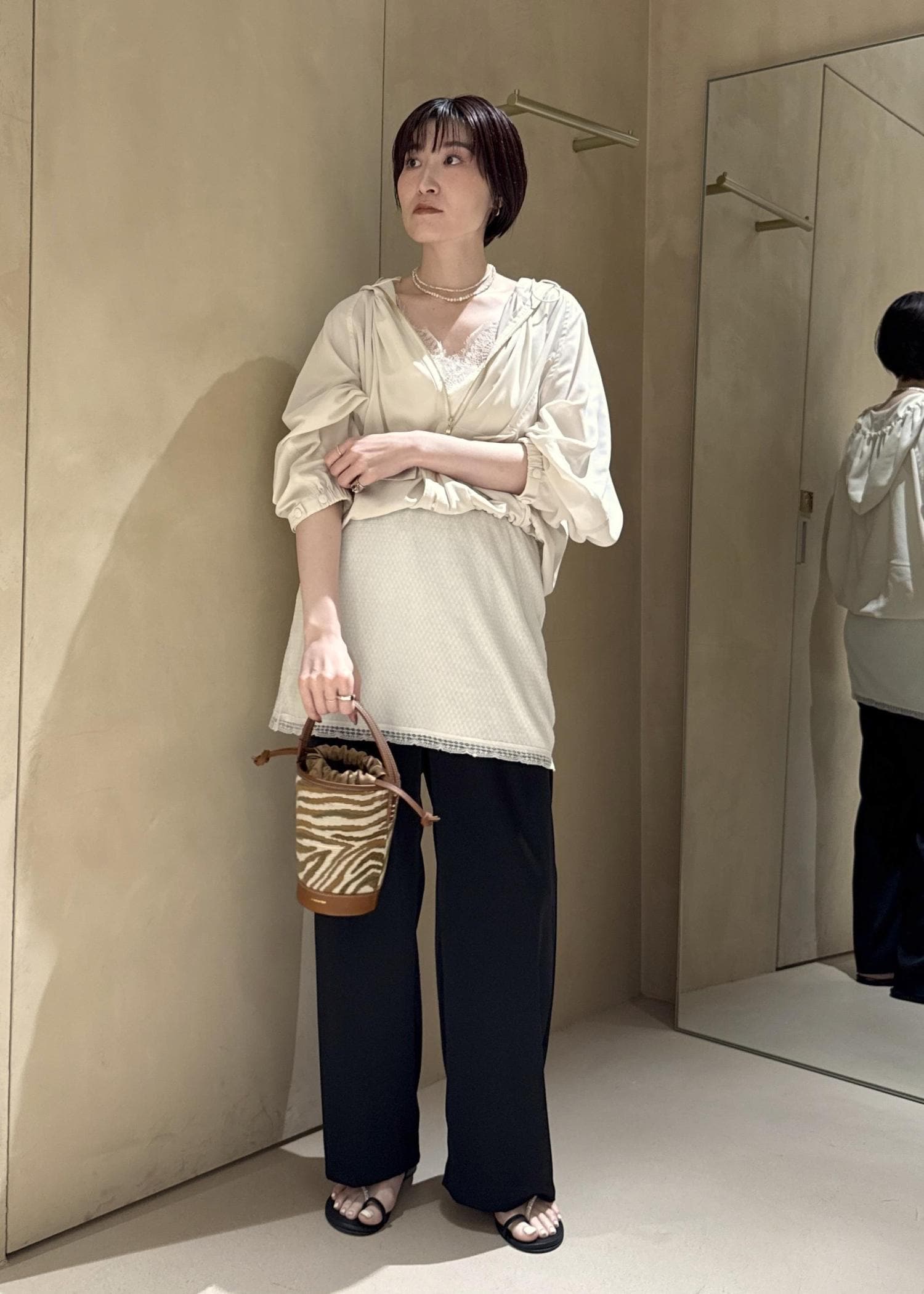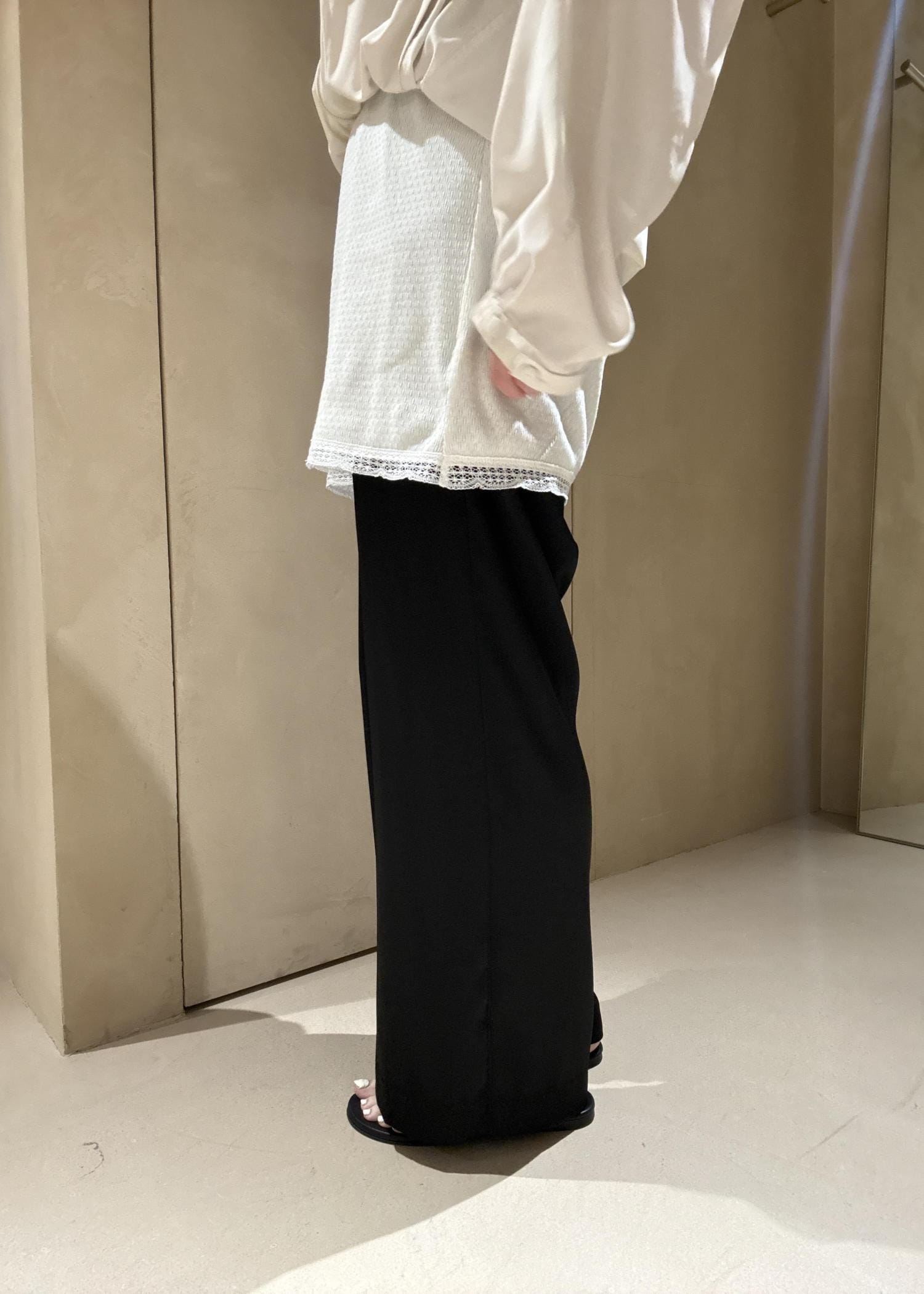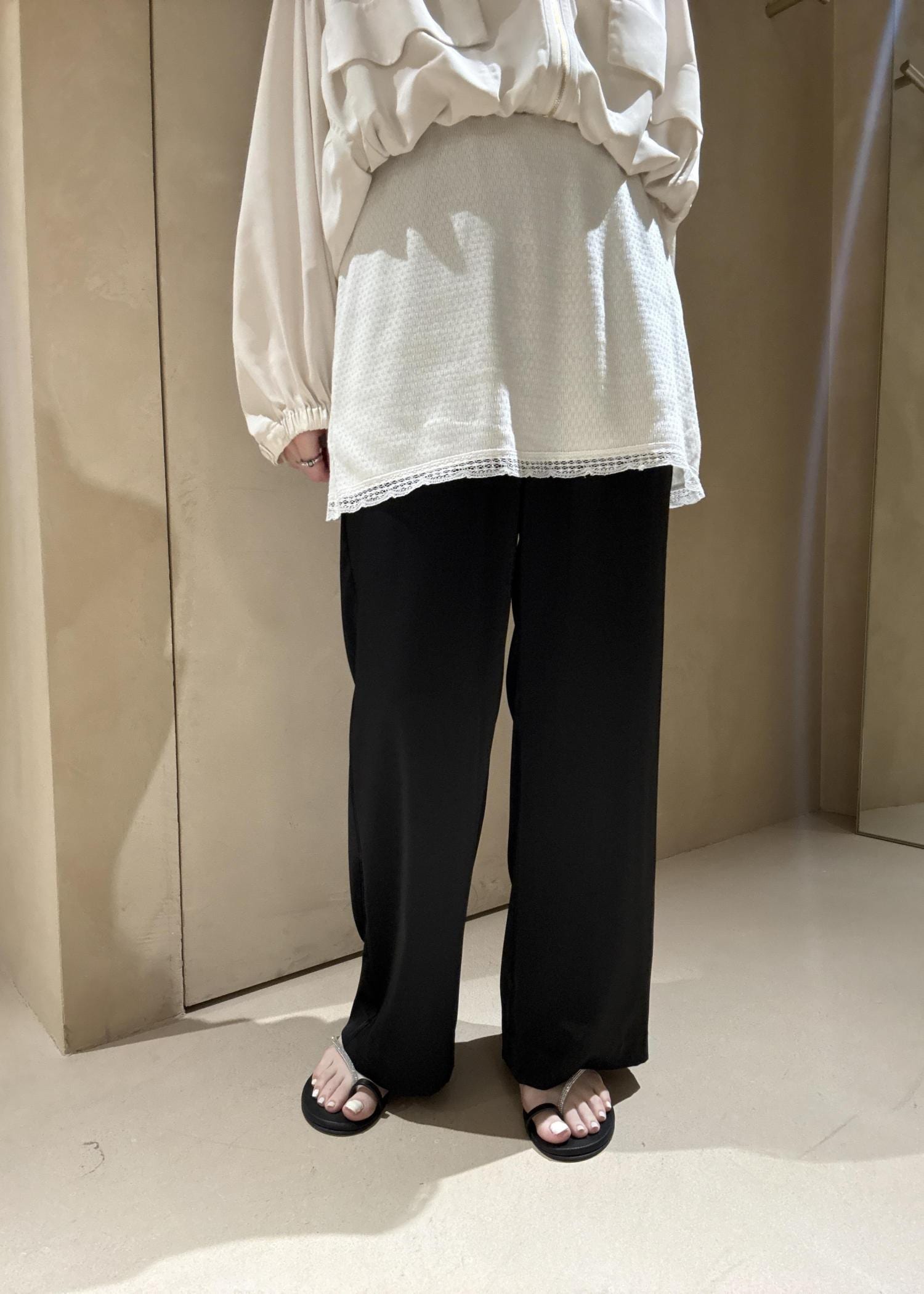 ROPÉ SELECT【一部店舗限定】【REALM(レルム)】SATIN EASY PANTS|とろみパンツ 26SSブラック / 38¥30,800レビュー161㎝で38サイズを着用しています。ウエストがゴムなので楽に着用できます。紐もついているので、ウエスト調整も可能です。ボリュームもですぎないスッキリシルエットで、サラッとした着心地が夏場も活躍できそうです。