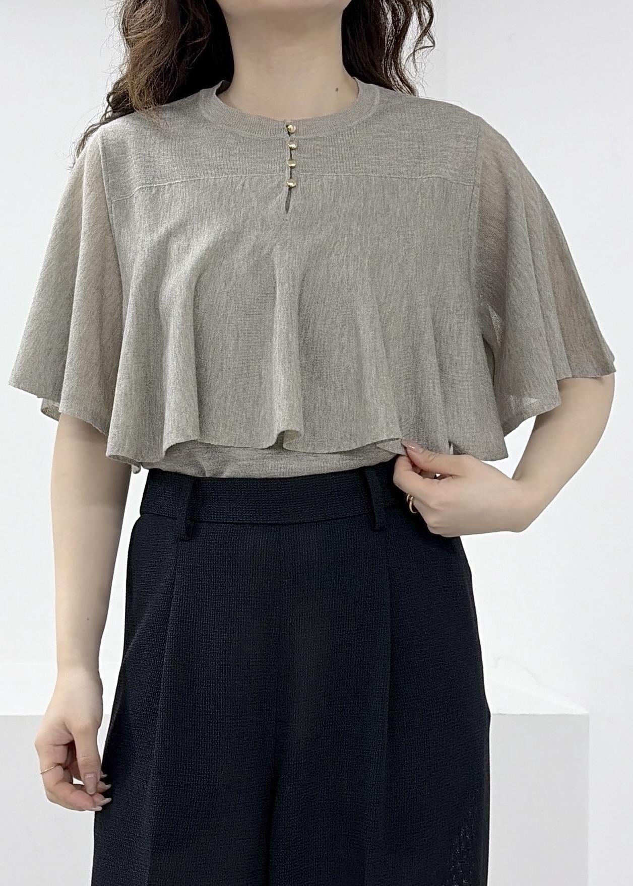体型を選ばない、ティアードデザインが特徴のトップス。1枚で着映えします◎