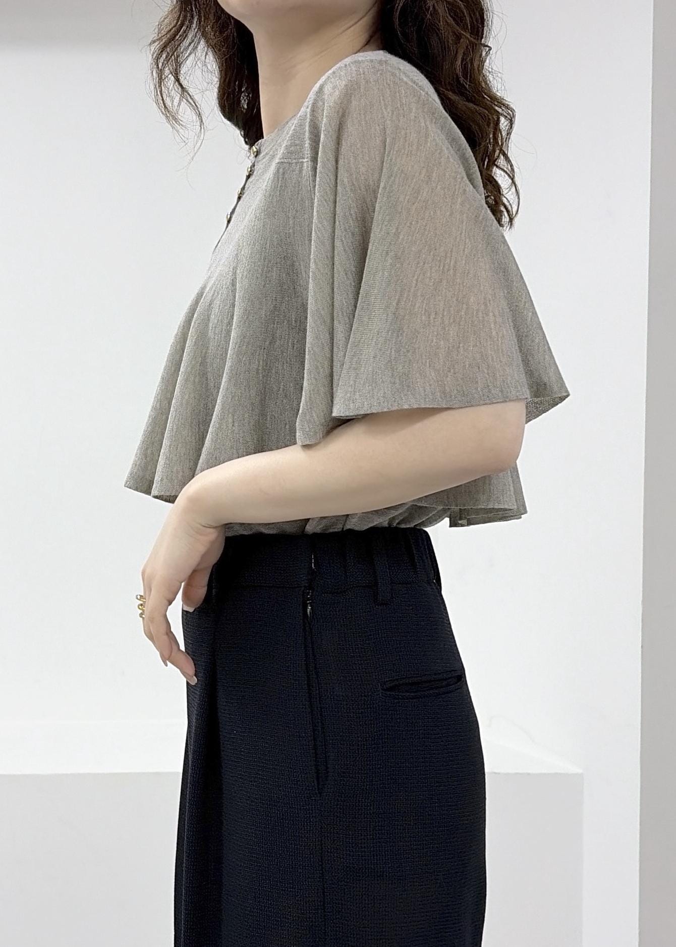 着丈は腰骨にかかるくらい。裾広がりでインをしなくても良いデザインです。二の腕が隠れる安心感も♪