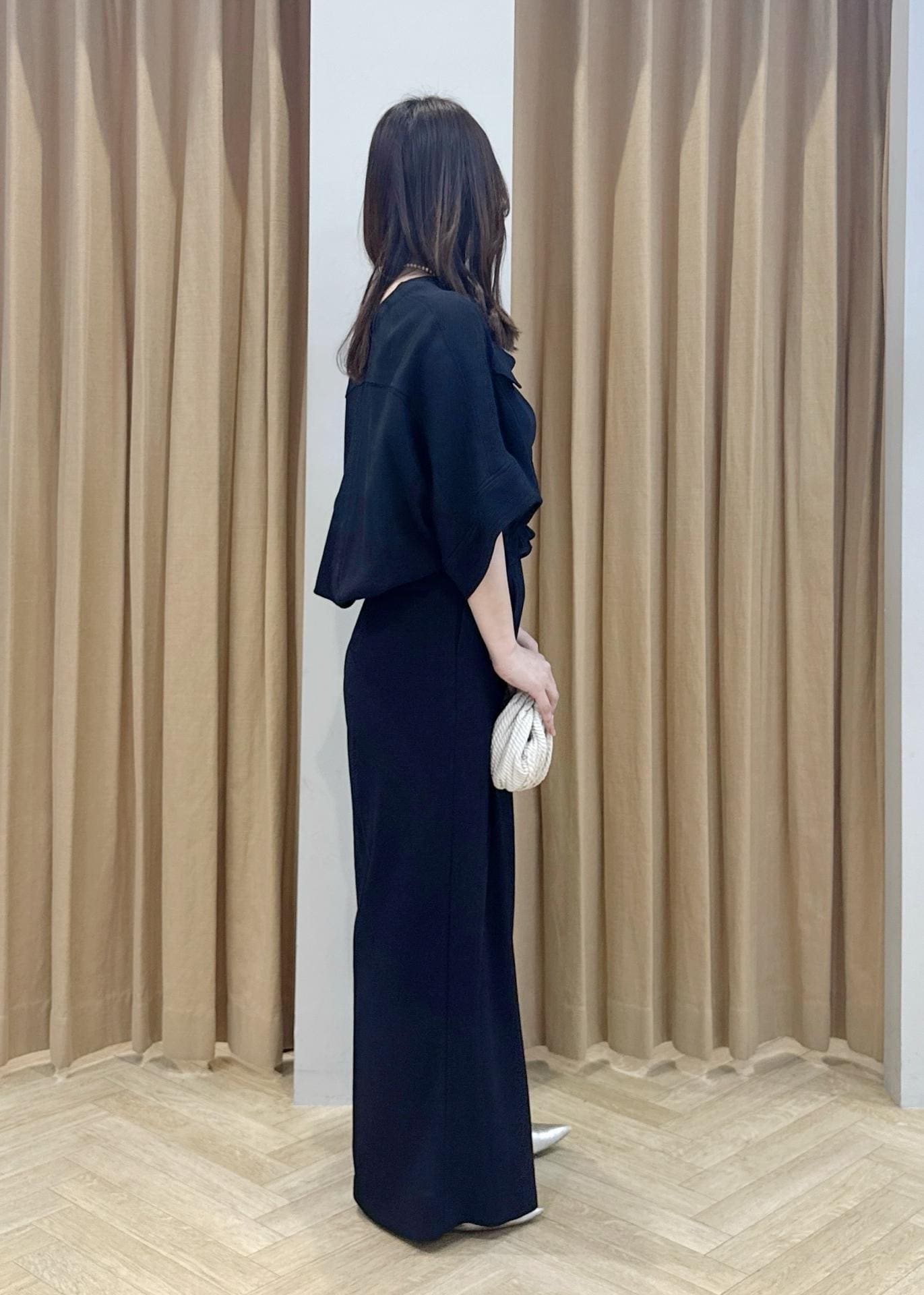 ウエストタックと、横ファスナーにしていることで下腹が目立たないのも着痩せ効果があります。 -