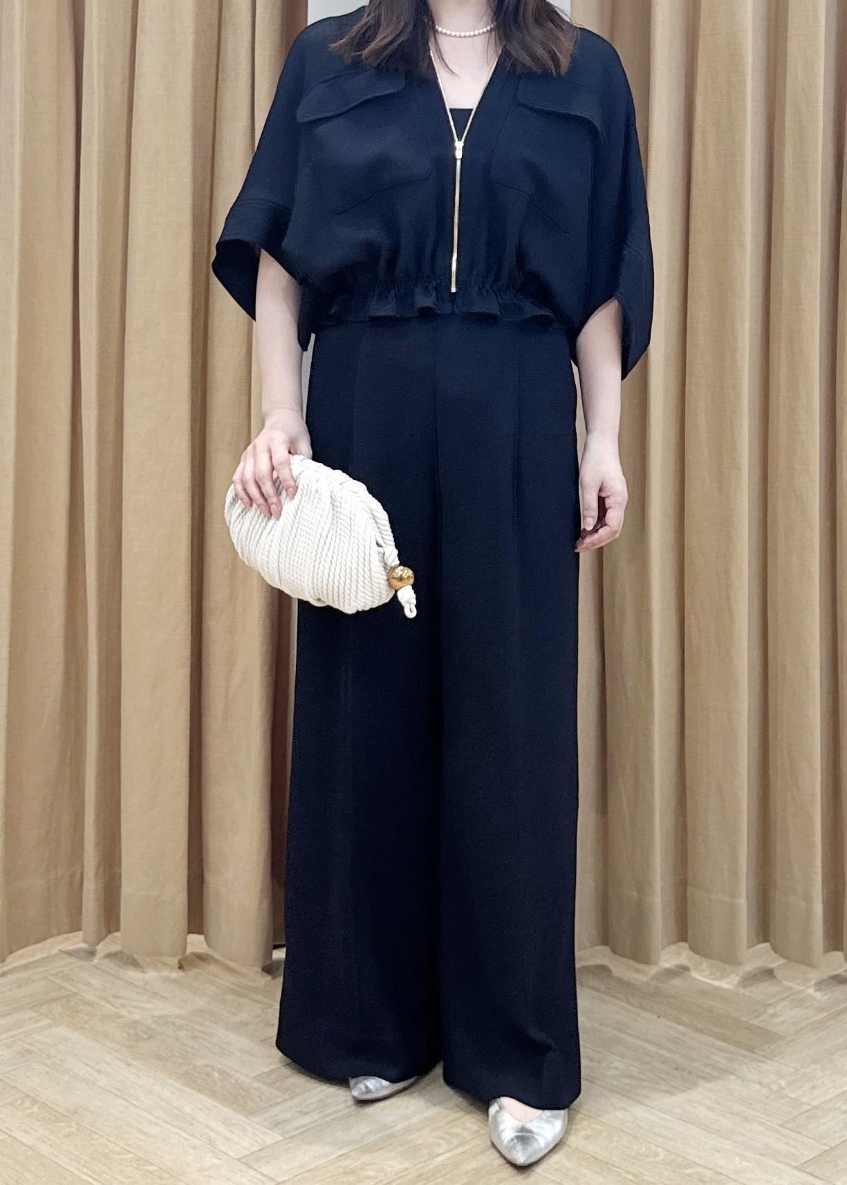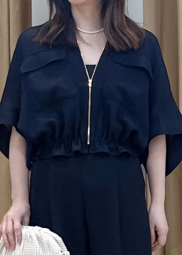 ゴールドのファスナーがあるのでシンプルにならず、同素材のセットアップ対応のパンツと合わせるのはもちろん、デニムやスカートともサラッと着こなせます。 -