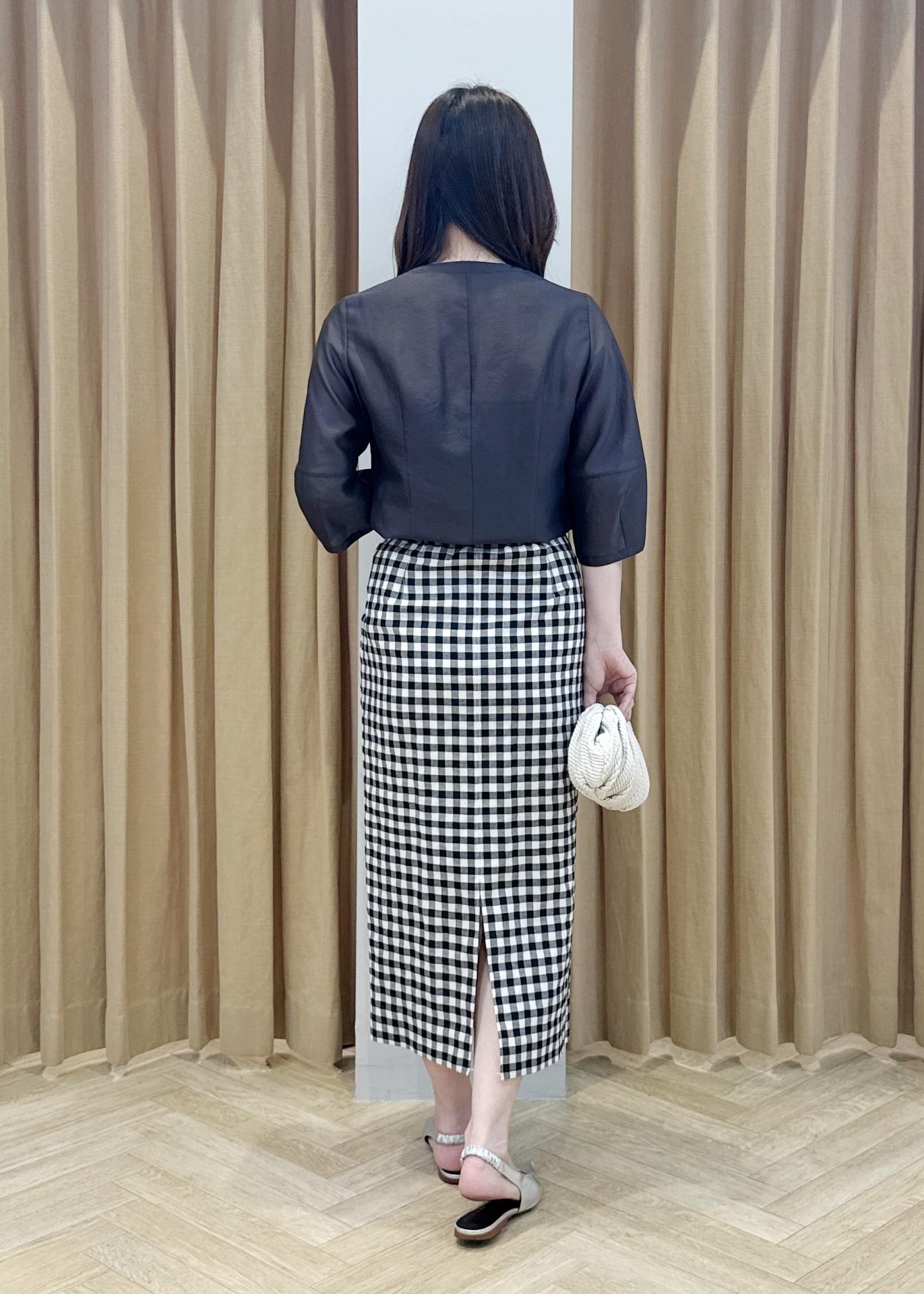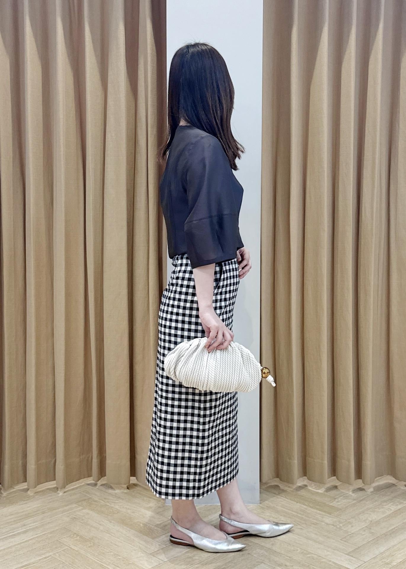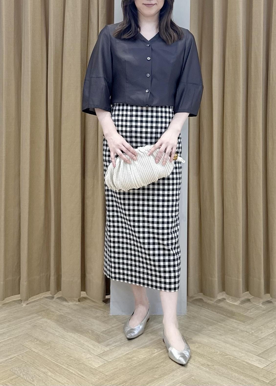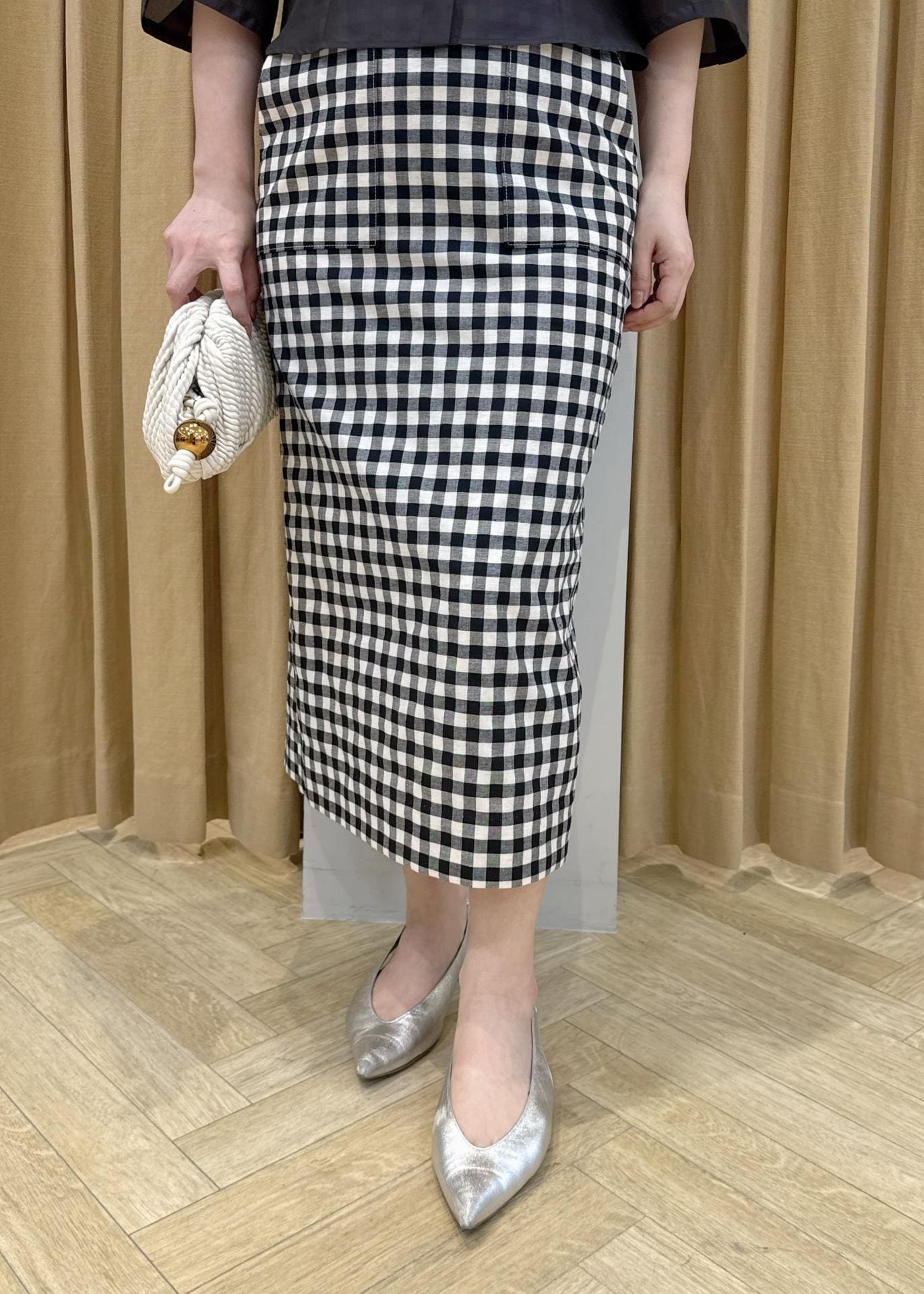[美人スカート]別注リネン混ギンガムチェックポケット付きタイトスカート/26SS・イージーケア