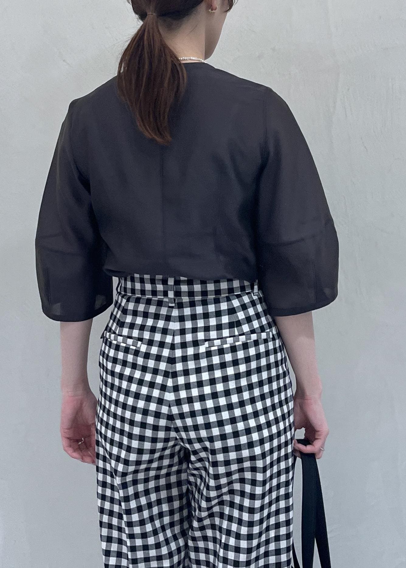 ツヤ×透けの抜け感のあるブラウス。