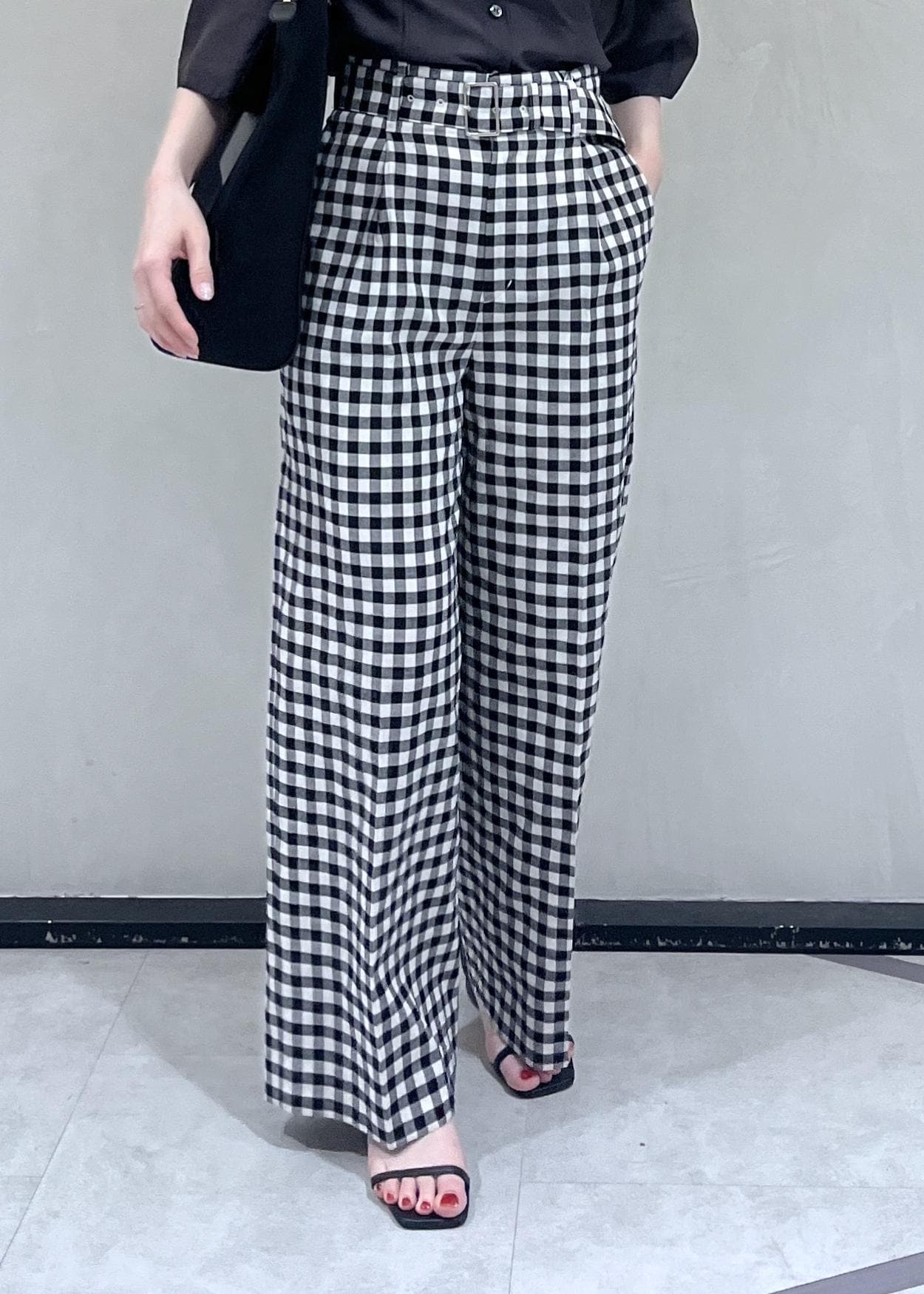 ROPÉリネン混ギンガムチェックワイドパンツ/イージーケアブラック系 / 38¥29,700レビュー身長165cm 38サイズ着用