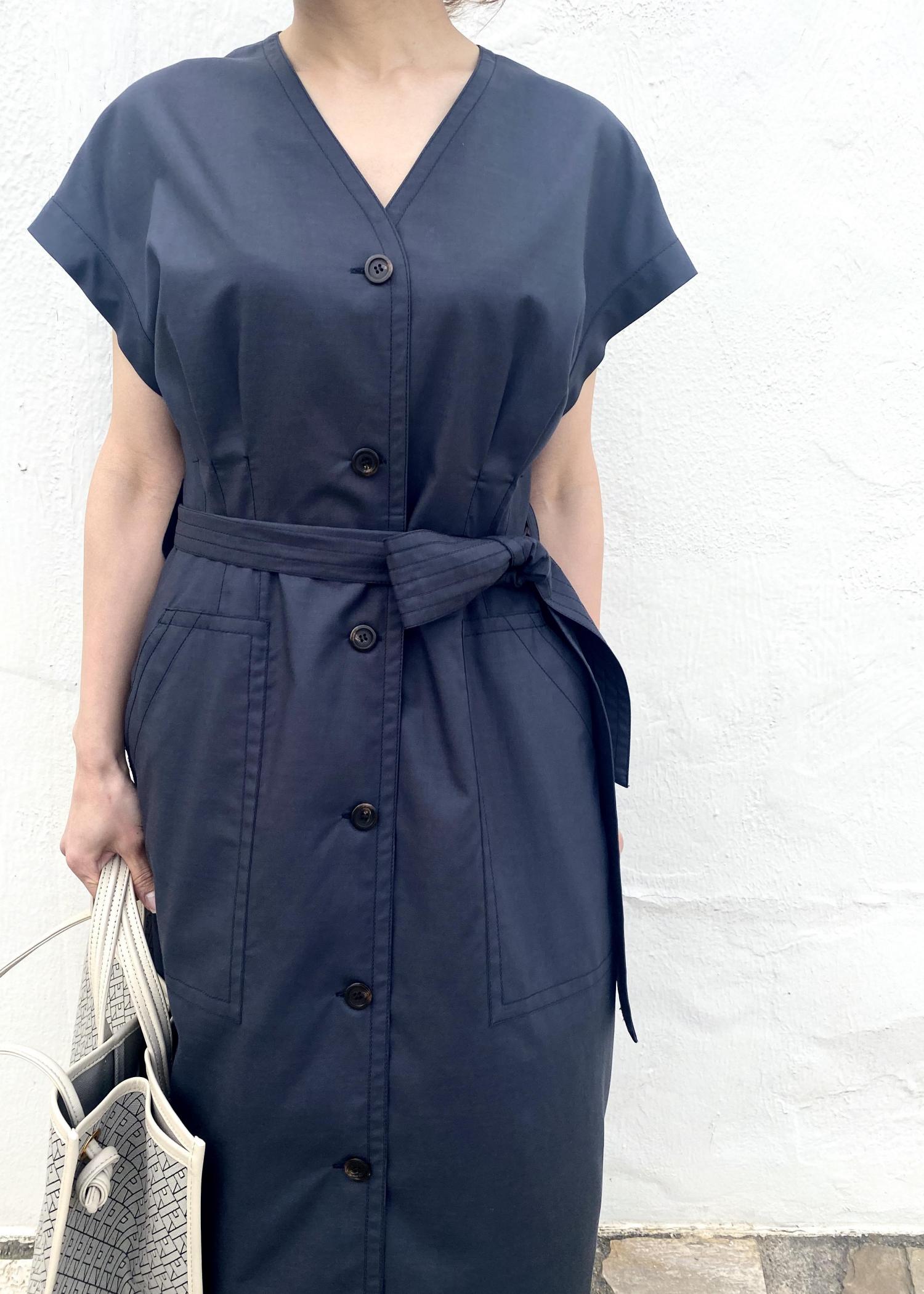 スカートペチが付いているワンピースなので透けなく、安心して着れる1枚。胸元のVネックラインも1枚でキレイに見えるライン。ベルトが高めの位置についているので、Sサイズの私でもバランスよく見えますよ。
