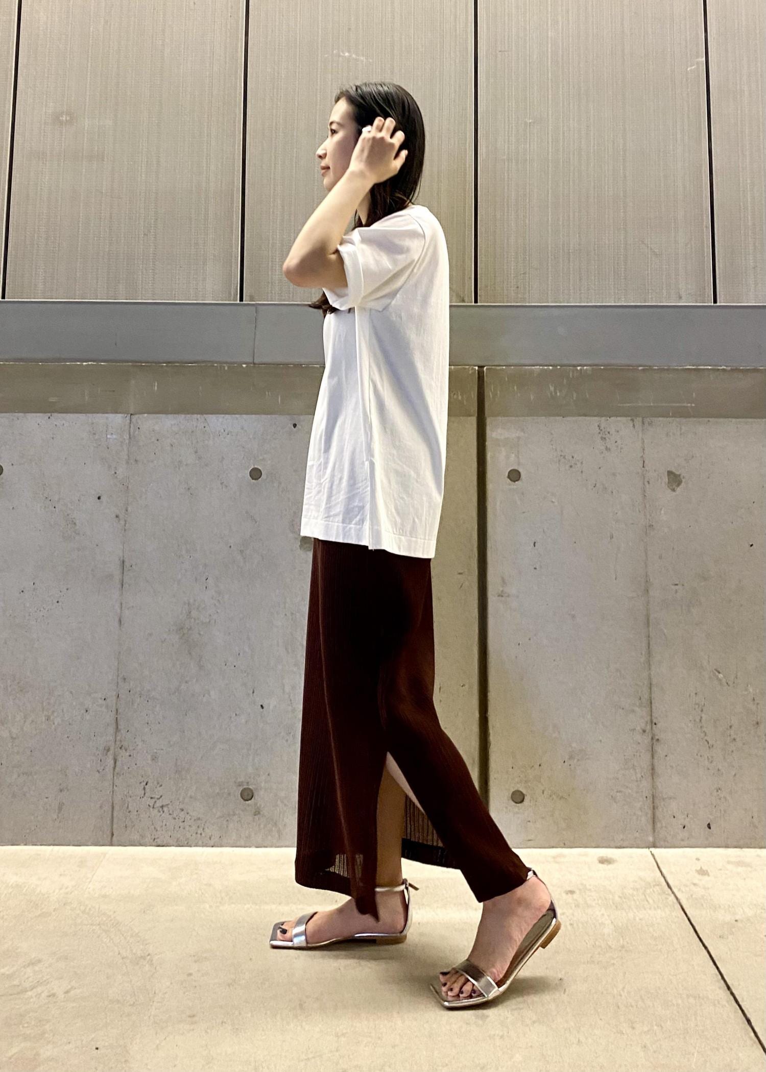 足元のサンダルとバッグをシルバーで合わせ夏らしく♪
