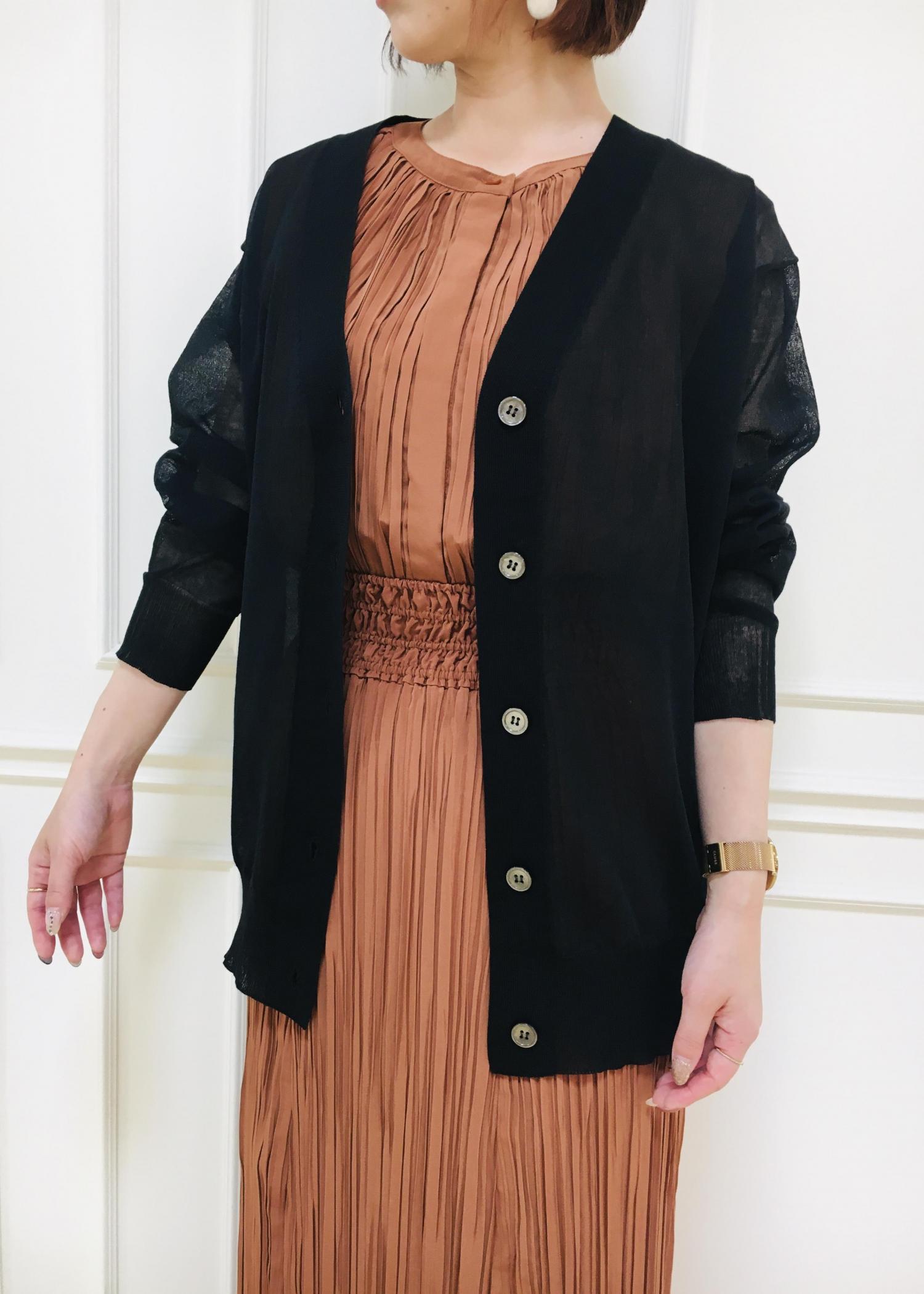 着回しコーディネートもしやすいセットアップスタイリングです。 ノースリーブブラウスをスカートにINしても、ごわつかずアウトで着ても綺麗めに来て頂けます。 ワッシャープリーツが身体のラインを拾わず、スッキリしたスタイルに見せてくれます。 腕を見せたくない方は、透け感のあるカーディガンは涼しく着れてお勧めです! LINEでロペスタッフに相談は【友だち追加】をタップをして下さい LINEでロペスタッフに相談は【友だち追加】をタップをして下さい