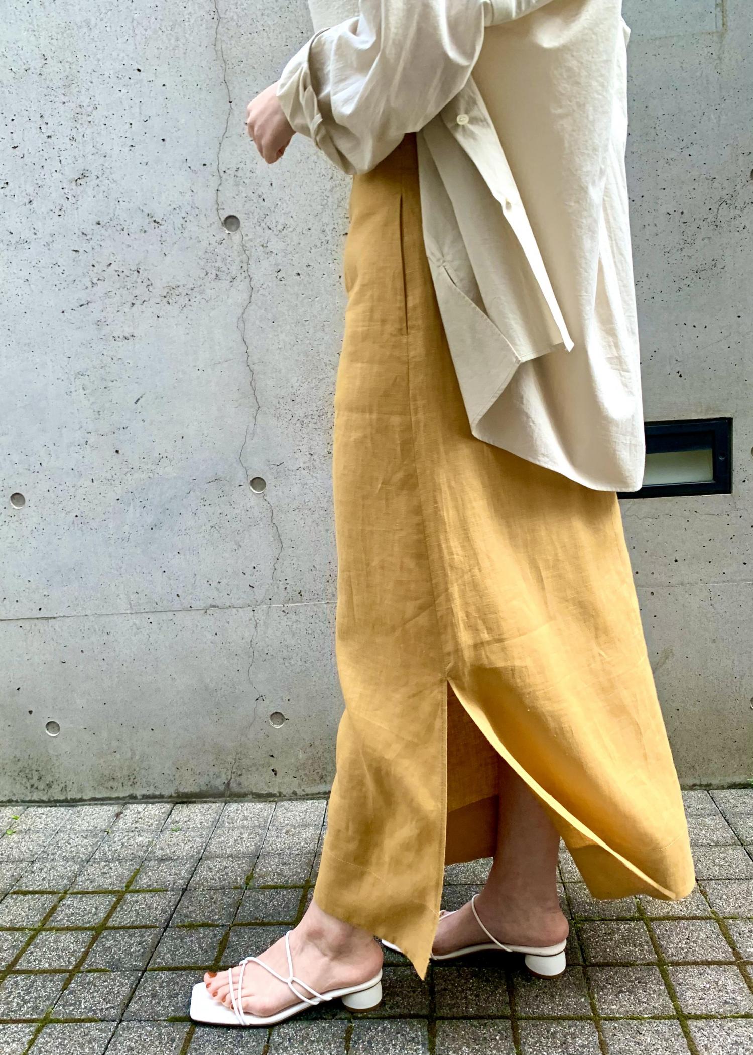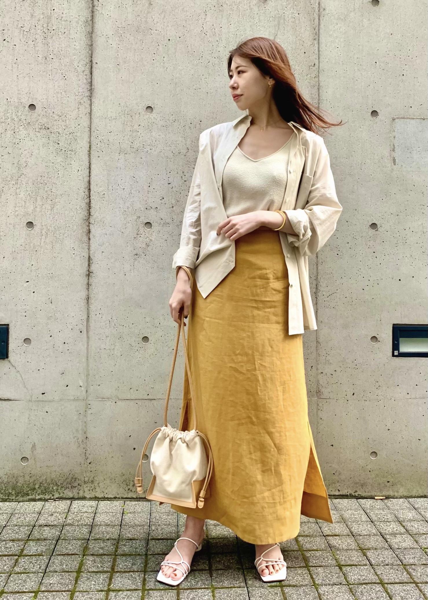 今回は、夏らしくイエローカラーのリネンスカートをメインに、コーディネートを組んでみました!