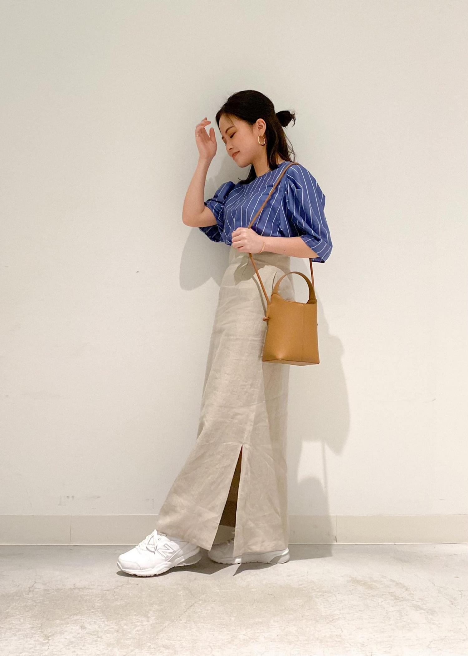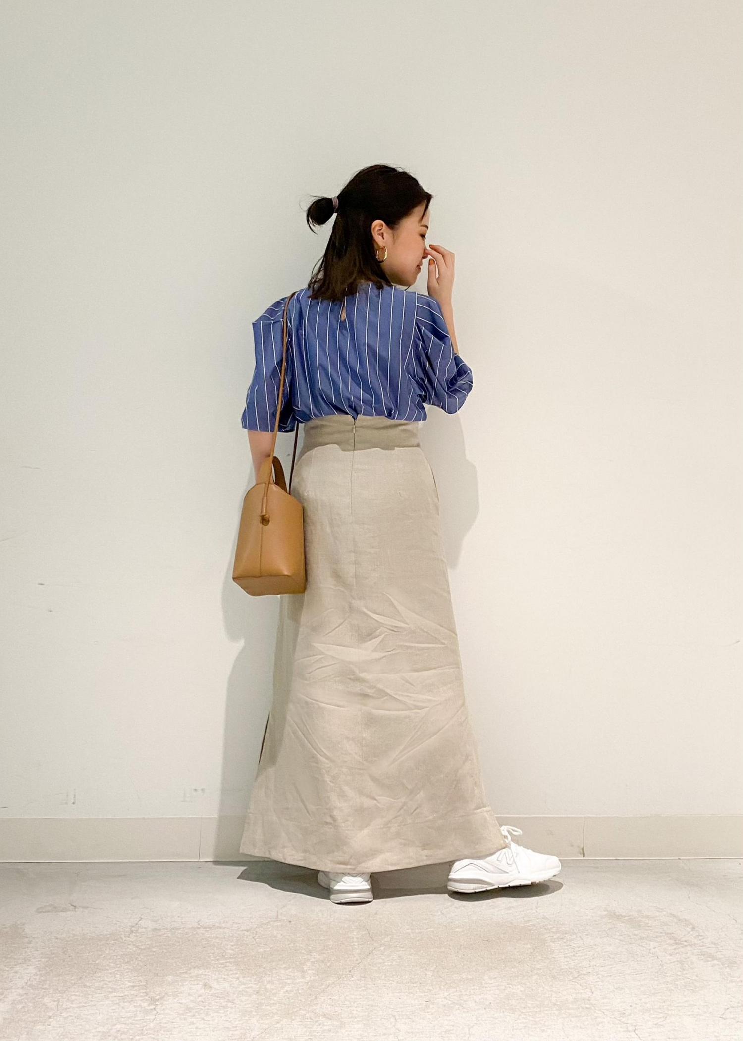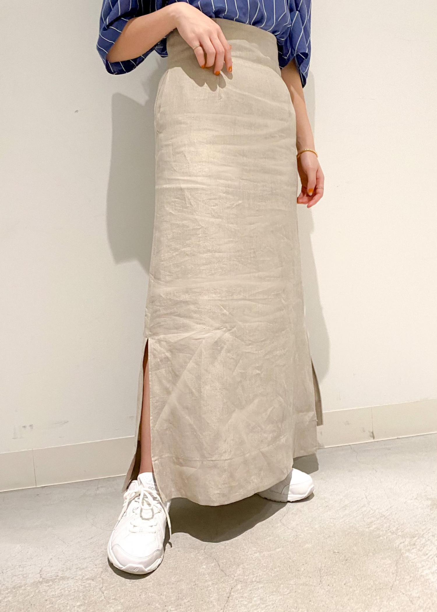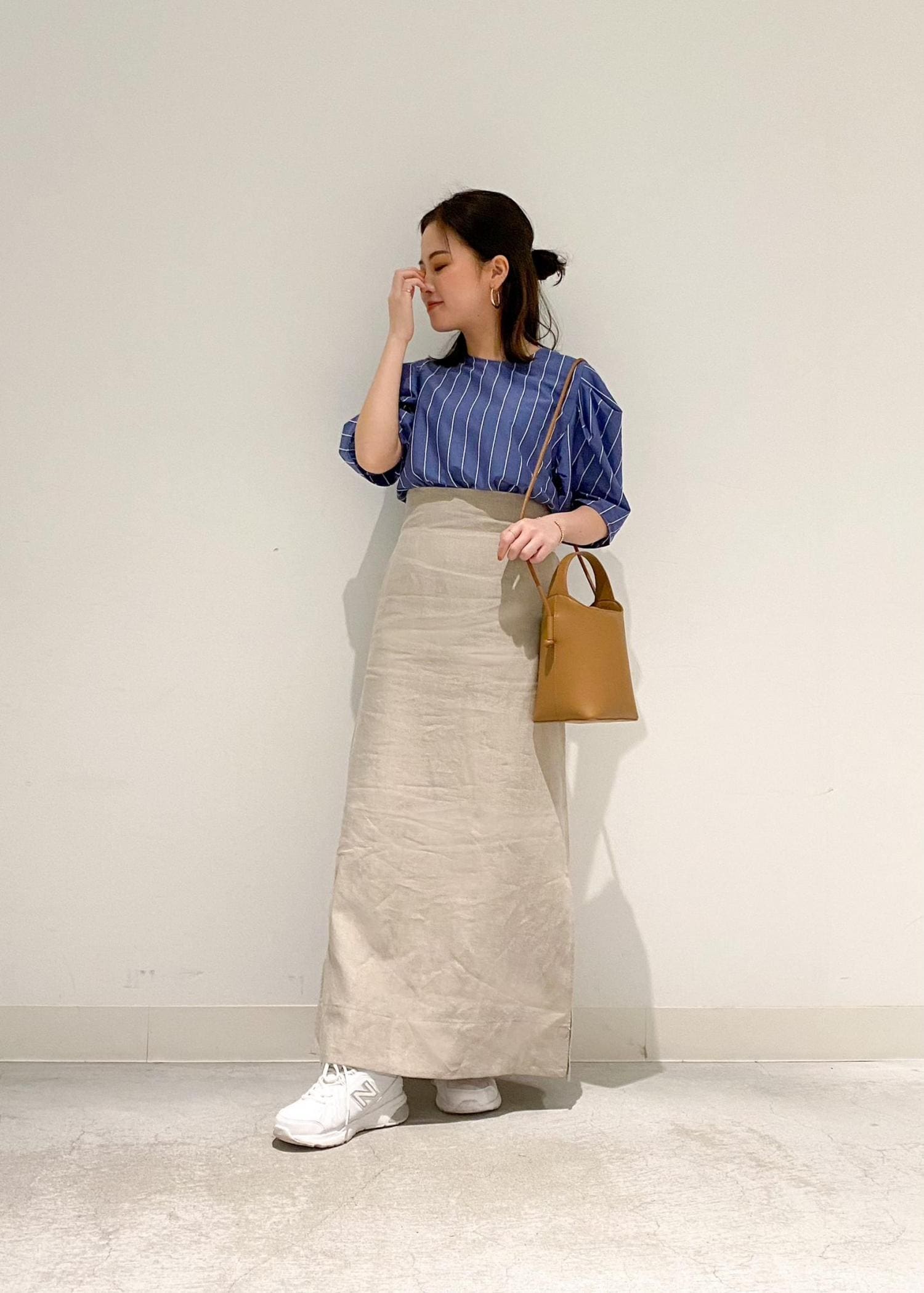 "リネンハイウエストマキシスカート"を使って夏の爽やかなスタイリングをコーディネートしてみました♪♪