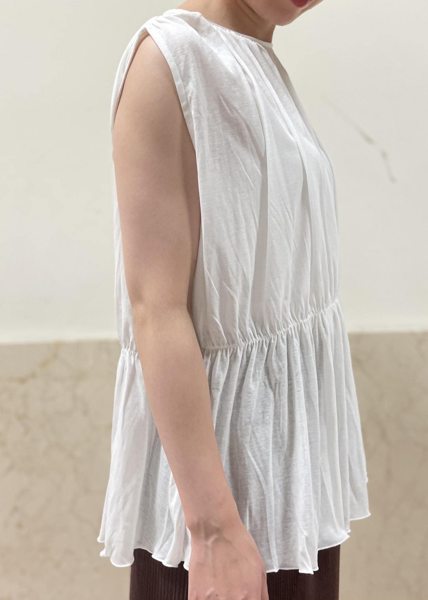 ギャザーがたっぷりと入ったペプラムデザイントップスです。