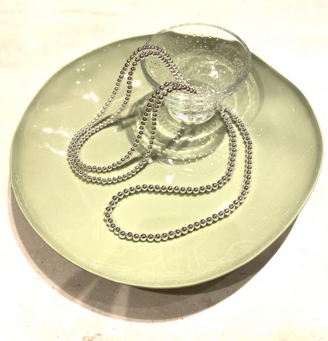 メタルパールショートネックレスとメタルパールロングネックレス。