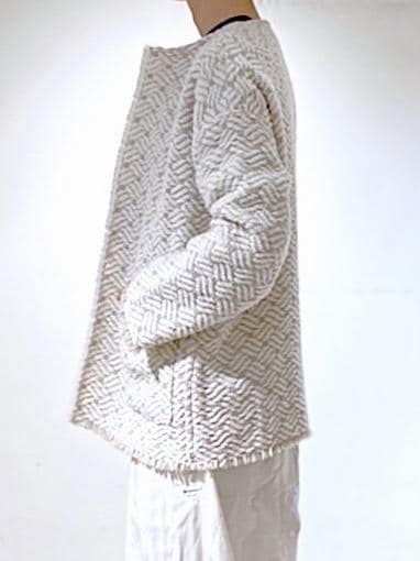 ノーカラーでカジュアルにも綺麗めにも使えるアウター。