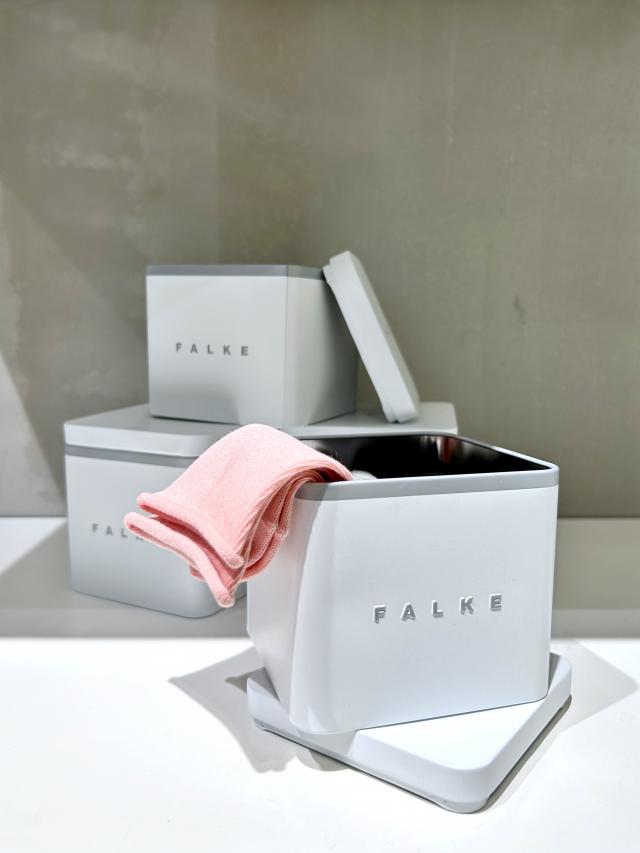 オシャレな缶に入ったFALKEのソックス。