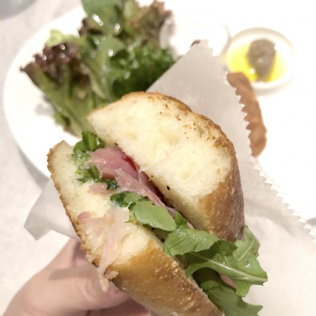 ふわふわもっちりなパニーニに、美味しいに決まってる生ハムとチーズがたっぷり入ってます。