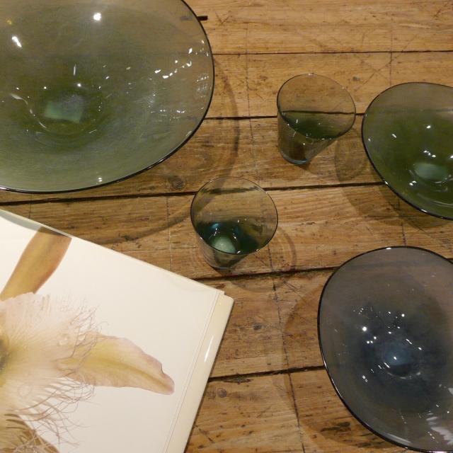 大阪和泉市のみかん畑に囲まれた工房で丁寧に作られたガラスは暖かい色味お柔らかい表情が見えます。