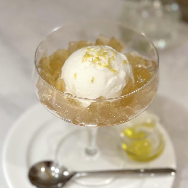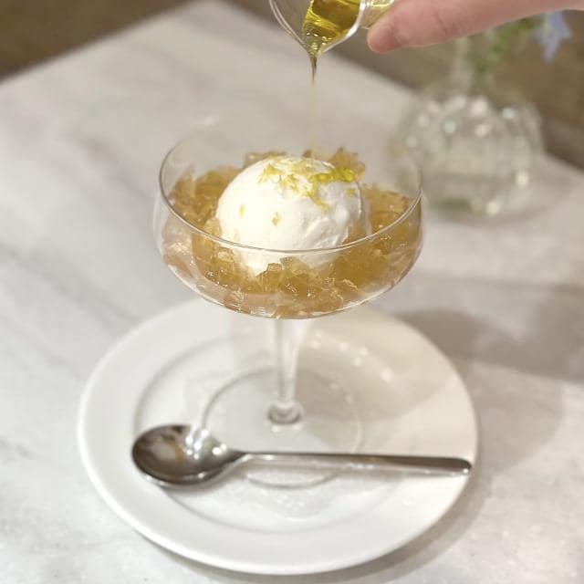 【吉祥寺cafe】ブルガリアヨーグルトアイスクリーム ジンジャージュレ&レモンオイル添え
