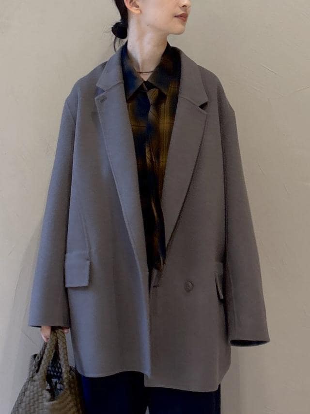 ・SHV35300 シャルムリバージャケットコート/ミドルウールコート ¥59,400(税込) カシミア級の肌触りで、羽織るだけでこなれた大人の上品スタイルが叶う、上質ウールリバー仕立ての軽やかリバーコート