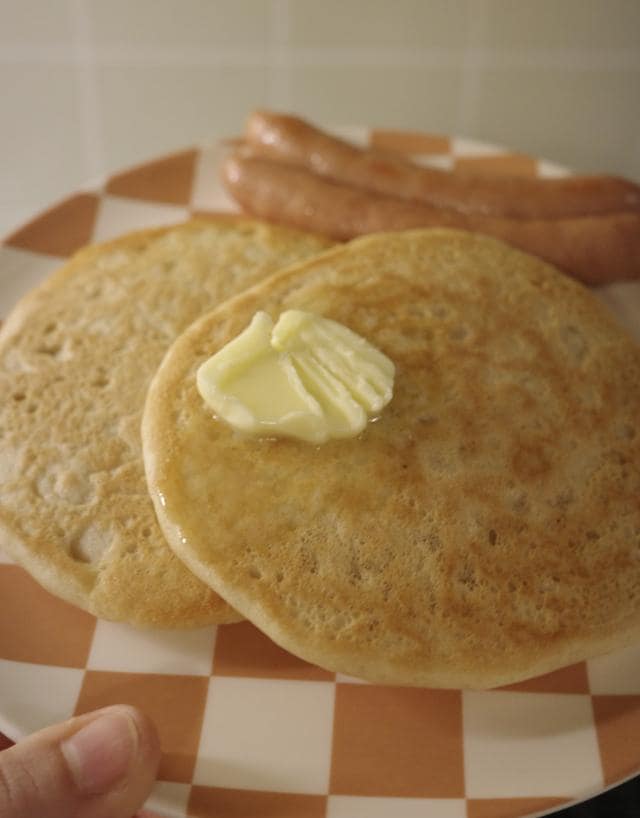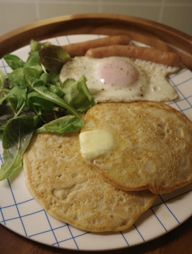 無糖かつ牛乳と卵を使わなくても美味しく食べられるパンケーキミックスです。