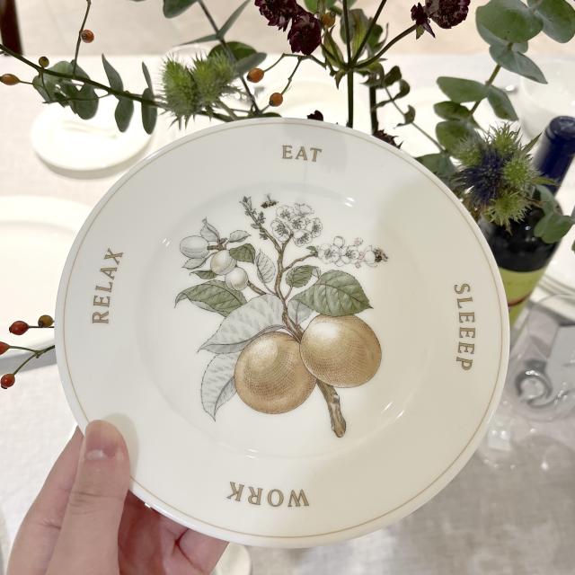 NIKKOの艶やかな白磁をベースに三宅瑠人さんがデザインしたラウンドプレート。