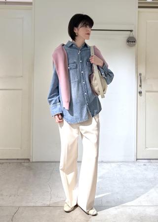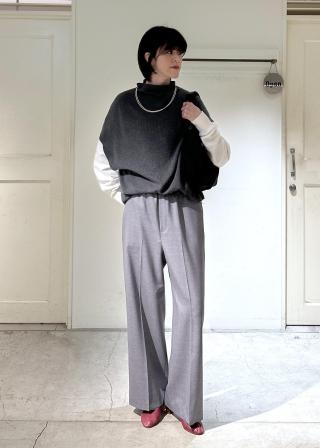 パンツなどメンズライクなスタイルにも可愛らしさをプラスしてくれるアイテムです。