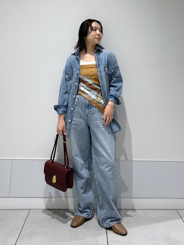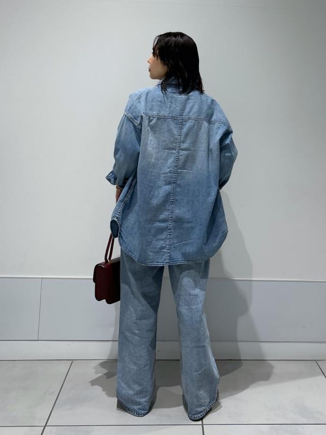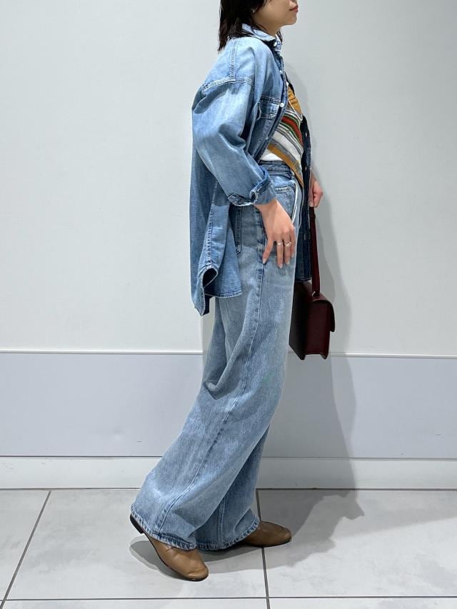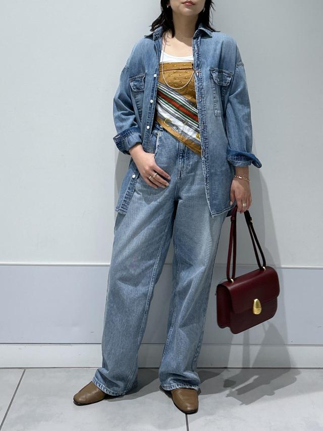 ルーズ感のあるシルエットのデニムパンツと