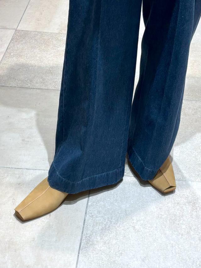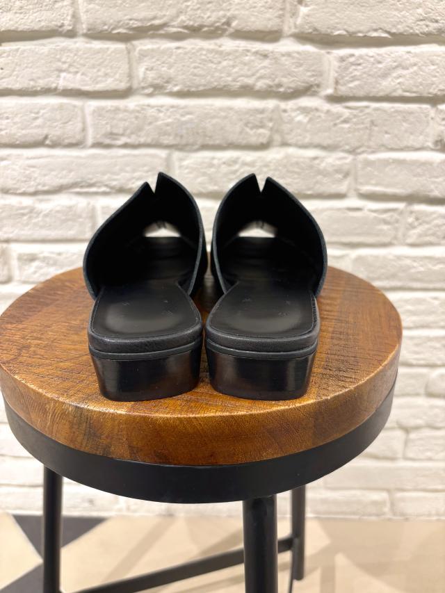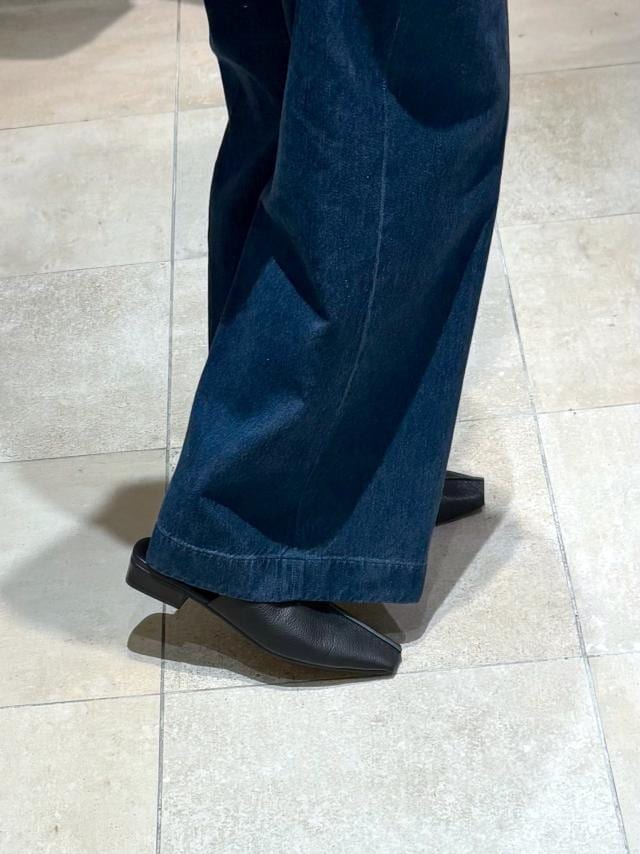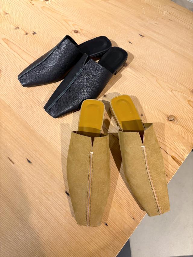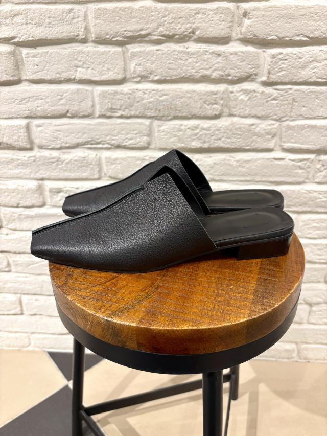 履くだけでキリッと大人なスタイルに決まる、レザーフラットミュールのご紹介です。
