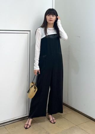 シルキーで上品な光沢感とリラクシーなムードが大人にぴったりのオールインワンです。