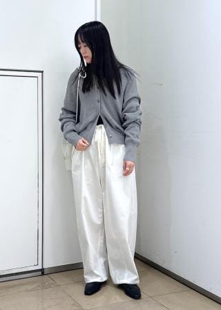 巾着コードを背面から引き抜きロングショルダーとしても使用可能で、結んで長さ調節すればラフなスタイルにも対応。