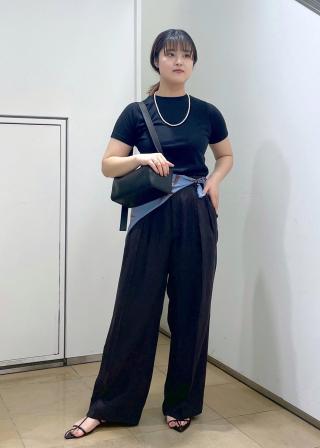 シンプルなアイテムには斜め掛けでポイントにすると◎