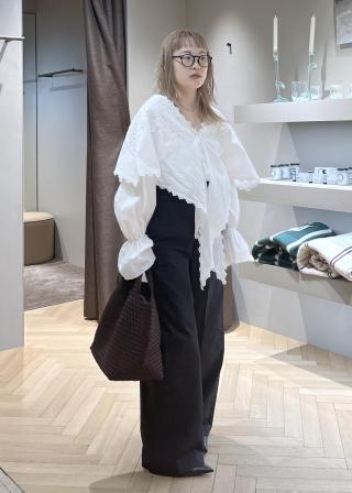 ミニマルなシルエットに、あえてほつれた切りっぱなしのエッジを施すことで、豊かな質感と表情をプラス。