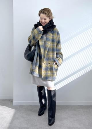 スナップボタンがついていてパチっと留めるだけで簡単に巻けるので、マフラーの巻き方が難しいという方にもオススメのデザインです♡