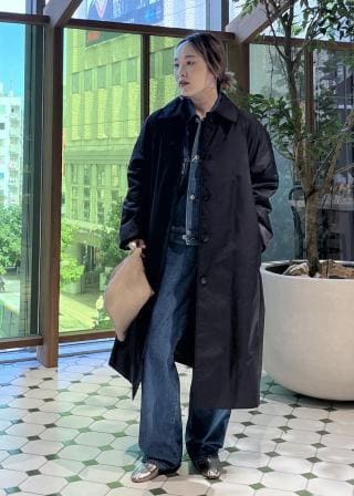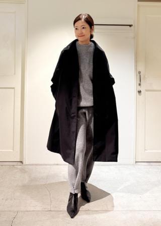 ストールやマフラーをプラスすれば、冬の本格コーデにも映える万能コートです。