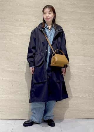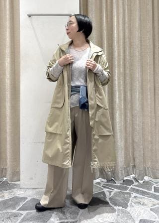 長めのスタンドカラーや程よい艶感により、カジュアルすぎず洗練された印象に仕上げています。