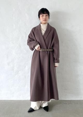 自然な光沢感とドレープ感があり、ゆったりサイズのロングコートながら、とても軽やかで着心地も暖かさも兼ね備えています。