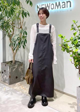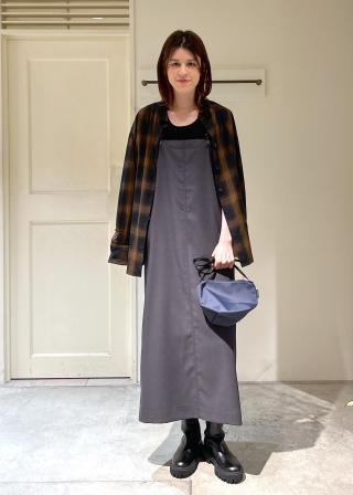 ショルダーベルトが長さ調節できるので、身長171cmでも安心して着られました。身幅はゆったりしているので厚手のニットなども中に着れます。バックスリットが入っているので、足捌きも楽です。