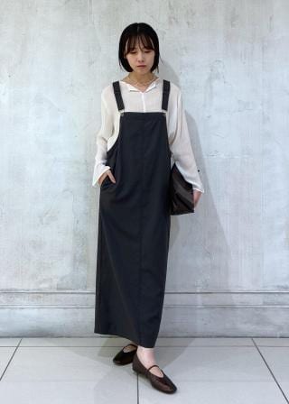 メンズライクな素材感と女性らしいIラインで美シルエットを実現。体型問わず着こなせる万能ジャンパースカート