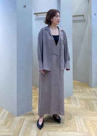 身幅はかなりゆとりがあり、着丈はくるぶしあたりまで。付属の同素材のベルトでウエストマークして着るのもおすすめです。