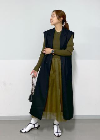 大人のスタイリングをシックに品良く見せてくれる、メランジ調のロングジレ。