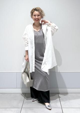 Iラインでスッキリしたデザインですが、身体のラインは拾わずゆとりがあるのでレイヤードもしやすいです。