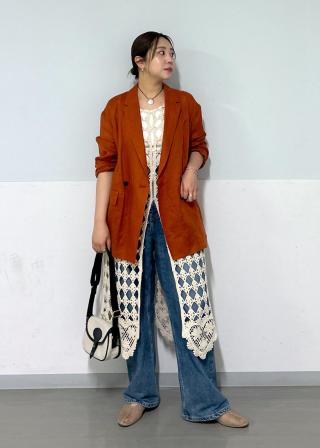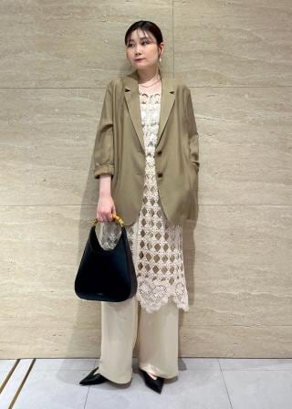 デニムなどのカジュアルボトムからシルクパンツなど素材MIXのレイヤードもオススメ。