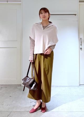 ウエストは絞りのないIラインで、上にニットを重ねてももたつかずレイヤードが綺麗にきまります。