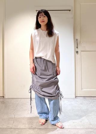 太めのデザインでハイウエストでも腰履きでも着れるシルエット。明るめのカラーで女性らしくも合わせられます◎