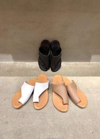 やわらかなレザーの質感が足に優しくフィットするサンダル。